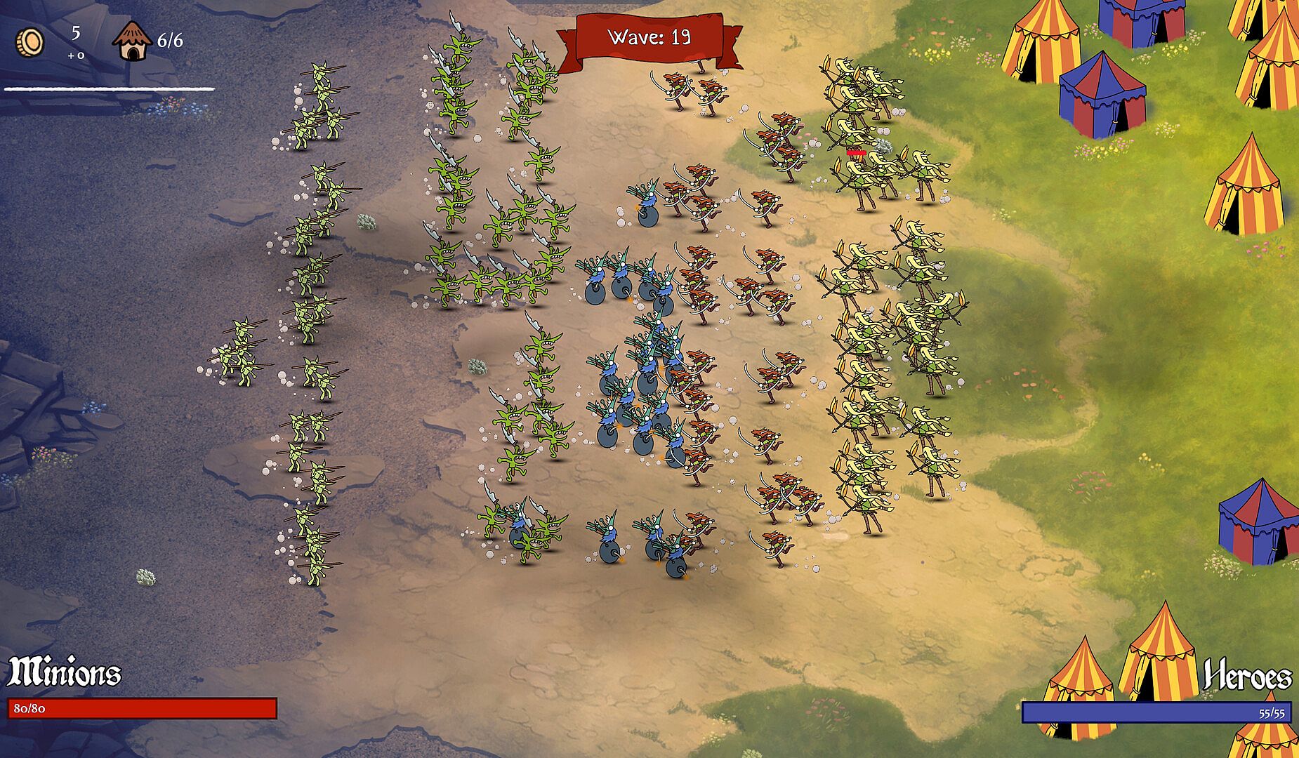 As an evil lord, you have a lot of enemies. See your minions resisting against a ever growing battalion of different heroes: elves, dwarves, humans, ... but nothing stops you from throwing spells then and there while your minions are fighting.
