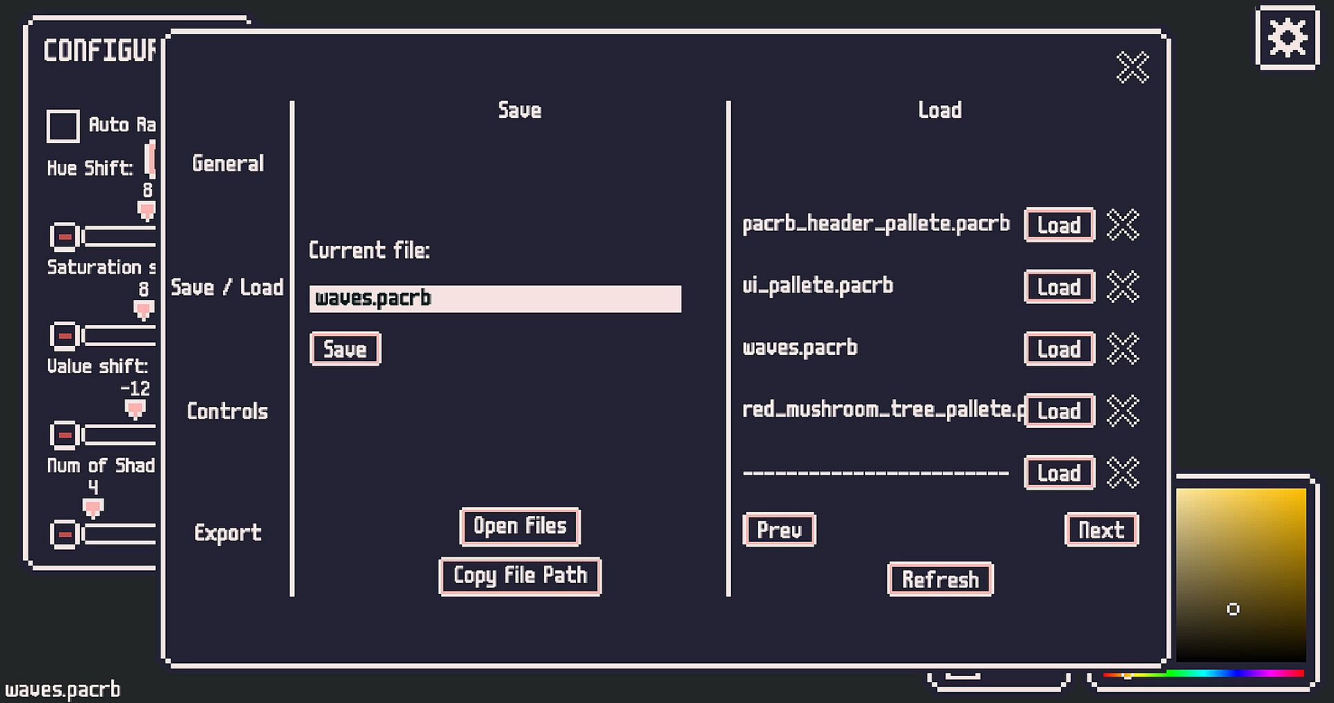 - Exporting to png, tga, and bmp, so you can use your palettes in ANY photo editor.