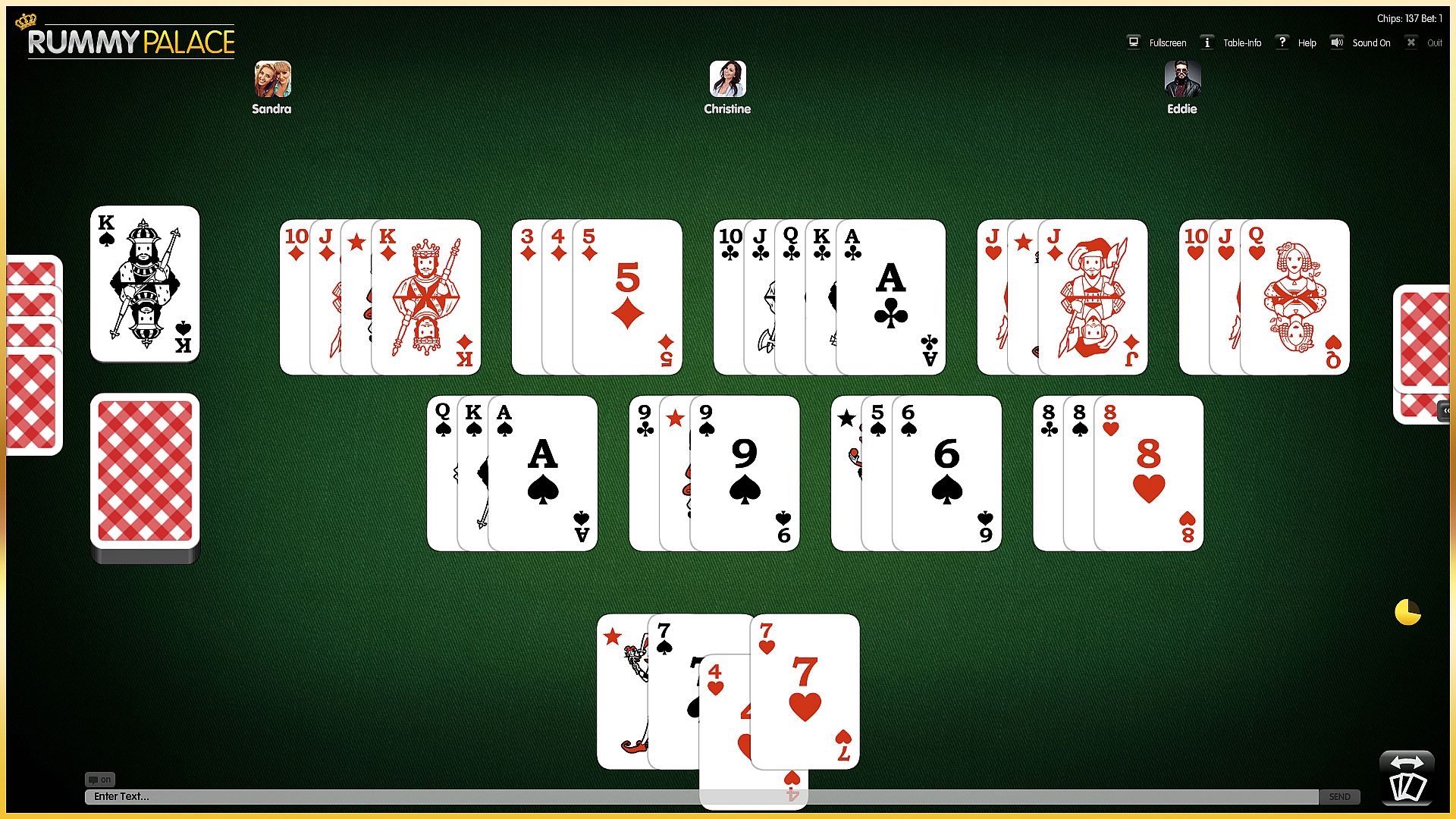 Rummy, the game for your whole family. Collect and match groups of cards and be the first to play all their cards in melds. The pacing is relaxed and you will have plenty of time to finish your turn. If you prefer you can join a private table with additional rules like “Knocking”, “No Jokers”, “Cyclic Laying” or any combination of the available custom rules. Play Rummy the way you like it.