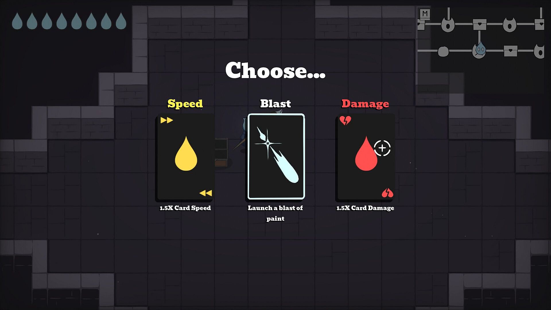 In Palette: Cards & Chaos, you play as a water spirit with a giant paintbrush, fighting through a shifting labyrinth full of danger. This top-down shooter blends fast-paced combat with a unique deckbuilding system: collect cards that represent brushstrokes and colors, then stack them to create powerful and unpredictable paintings of destruction.