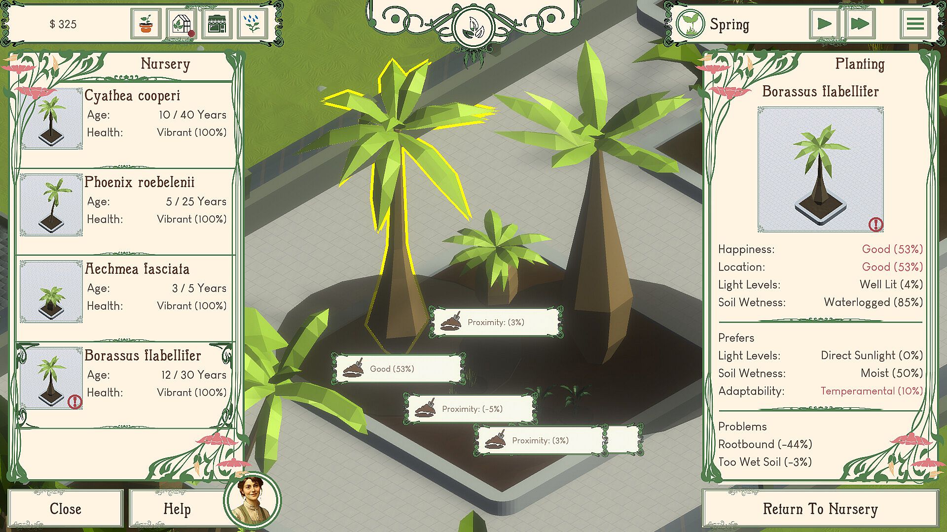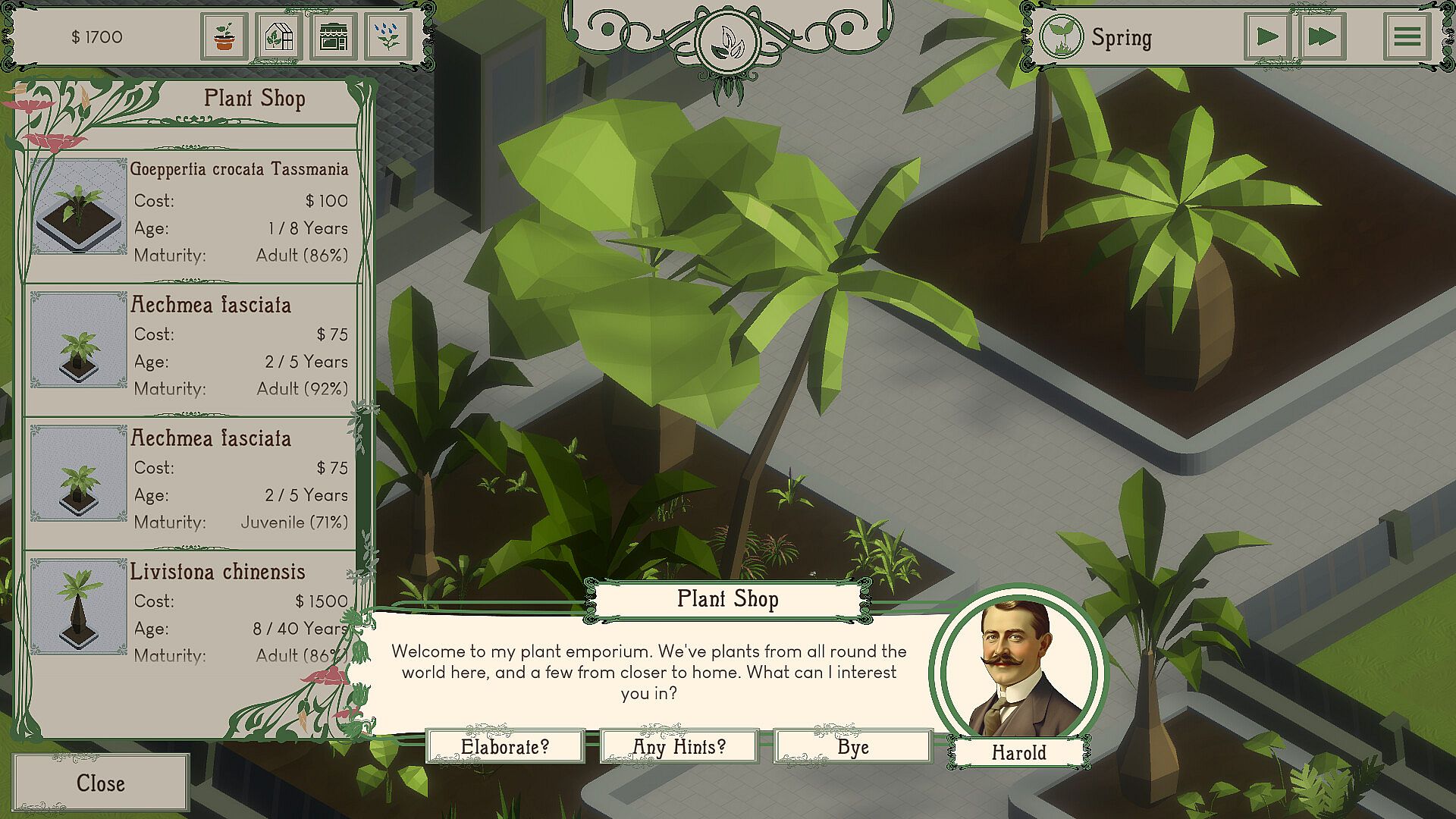As the head gardener of the tropical greenhouse in a botanical garden, you are tasked with designing, planting and maintaining a climate-controlled indoor garden to showcase tropical plants from around the world. Design and build artificial beds to contain soil or other growth media for different groups of plants. Select plants that compliment each other, arrange where to plant them in your garden and avoid any plant combinations that compete with each other. Source plants from around the world to add to your garden. Grow them from seed or buy mature specimens from outside growers. Keep your plants healthy by ensuring they get the right amount of light, shade and water.