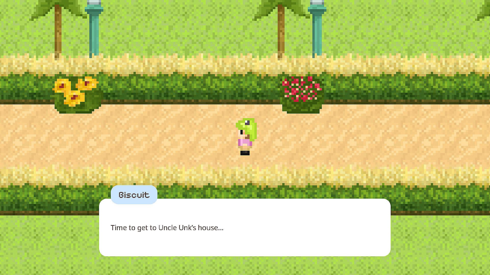 Plot: The economy is in shambles, and you're fresh outta college with no job and no prospects, so you fly to your millionaire uncle's island to catsit for the summer. However, when you arrive, you find out that all the islanders only speak French and you have to pay off your missing uncle's debt! Start a cafe, run a farm, fight demons in a school basement, go to court, and more as you discover each islander's lore and leave the island semi-fluent!