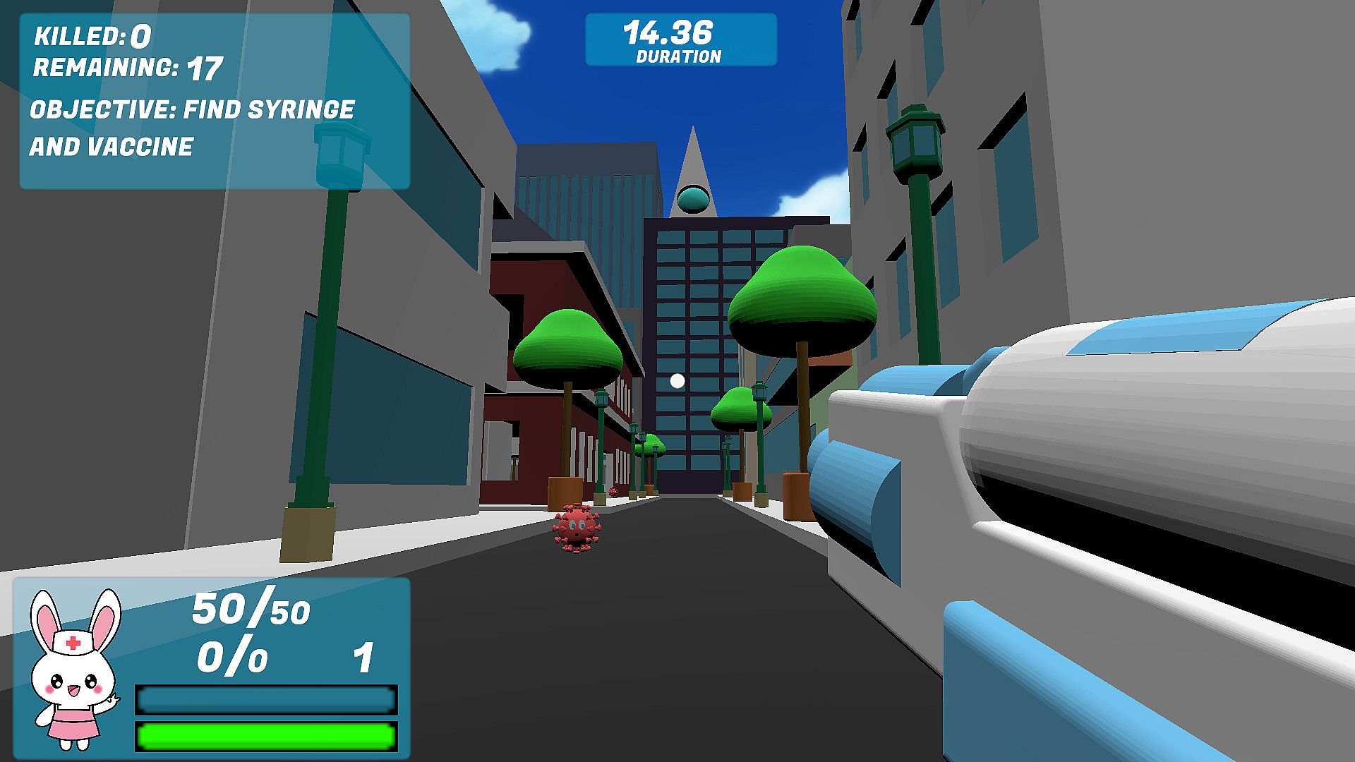 Fight viruses in a cute, lighthearted FPS mini-game as Nurse Bunny. Explore the city with a hand-sanitizer gun to track down the vaccine and wipe out Queen Viruses before they spawn more threats. Collect toilet paper for health, face masks for armor, and hand sanitizer for ammo while sanitizing every last virus to rescue humanity. This indie casual action game donates 10% of proceeds to charities supplying PPE to hospitals and food to those in need. Players who enjoy simple, fun Early Access shooters on PC will find a quick, health-themed loop that mixes combat with real-world support.