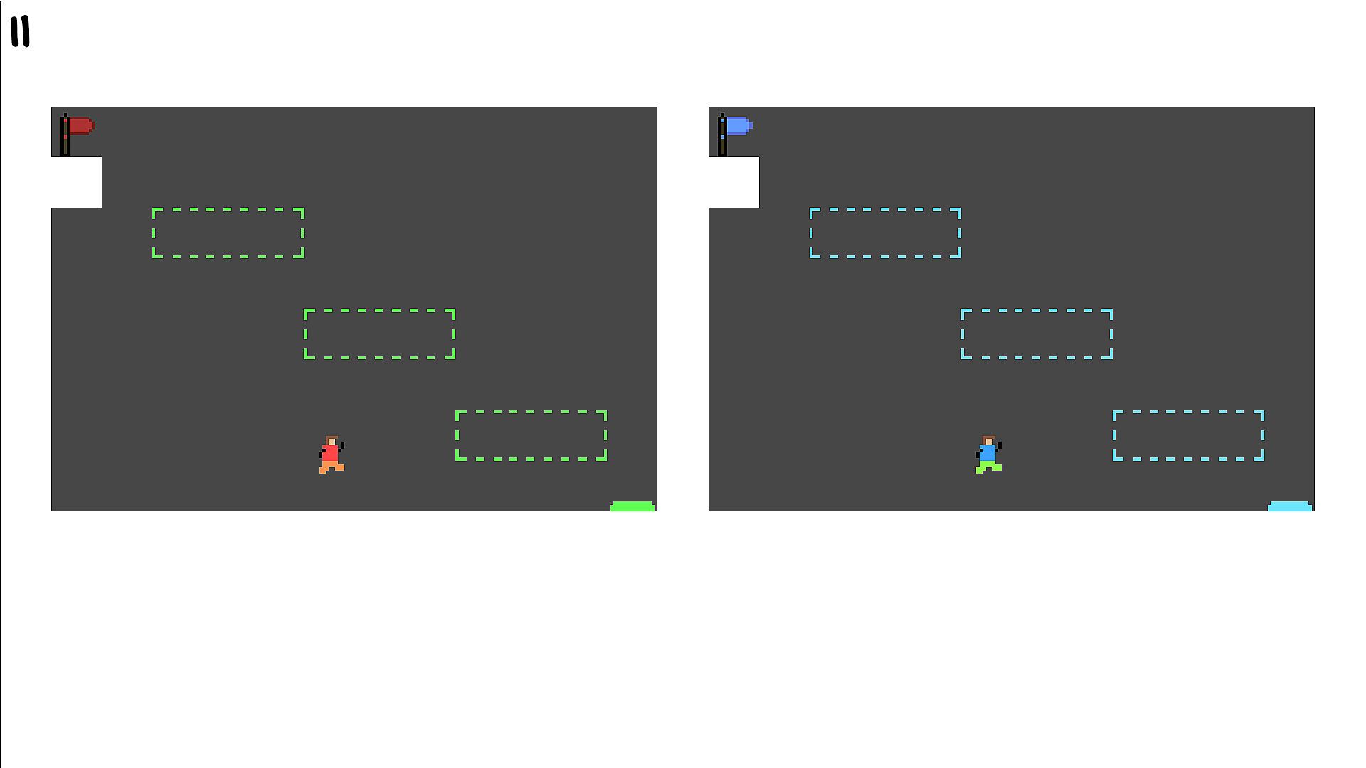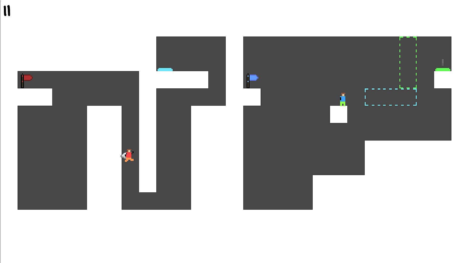 A single-player puzzle game where you control two characters simultaneously — with just one key.