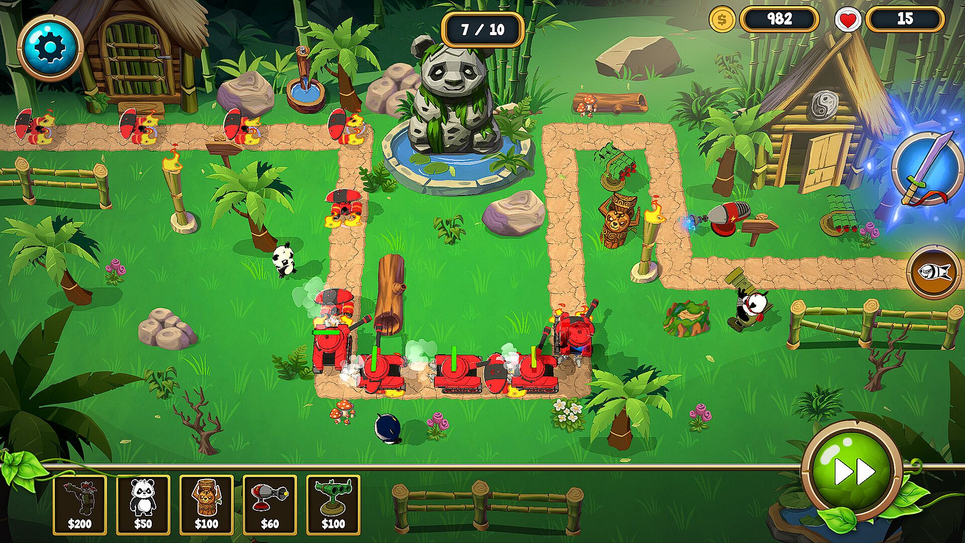 PanzenTD is a charming and strategic tower defense game where nature strikes back! Take control of heroic panda warriors defending their homeland from waves of chaotic, machine-powered invaders.