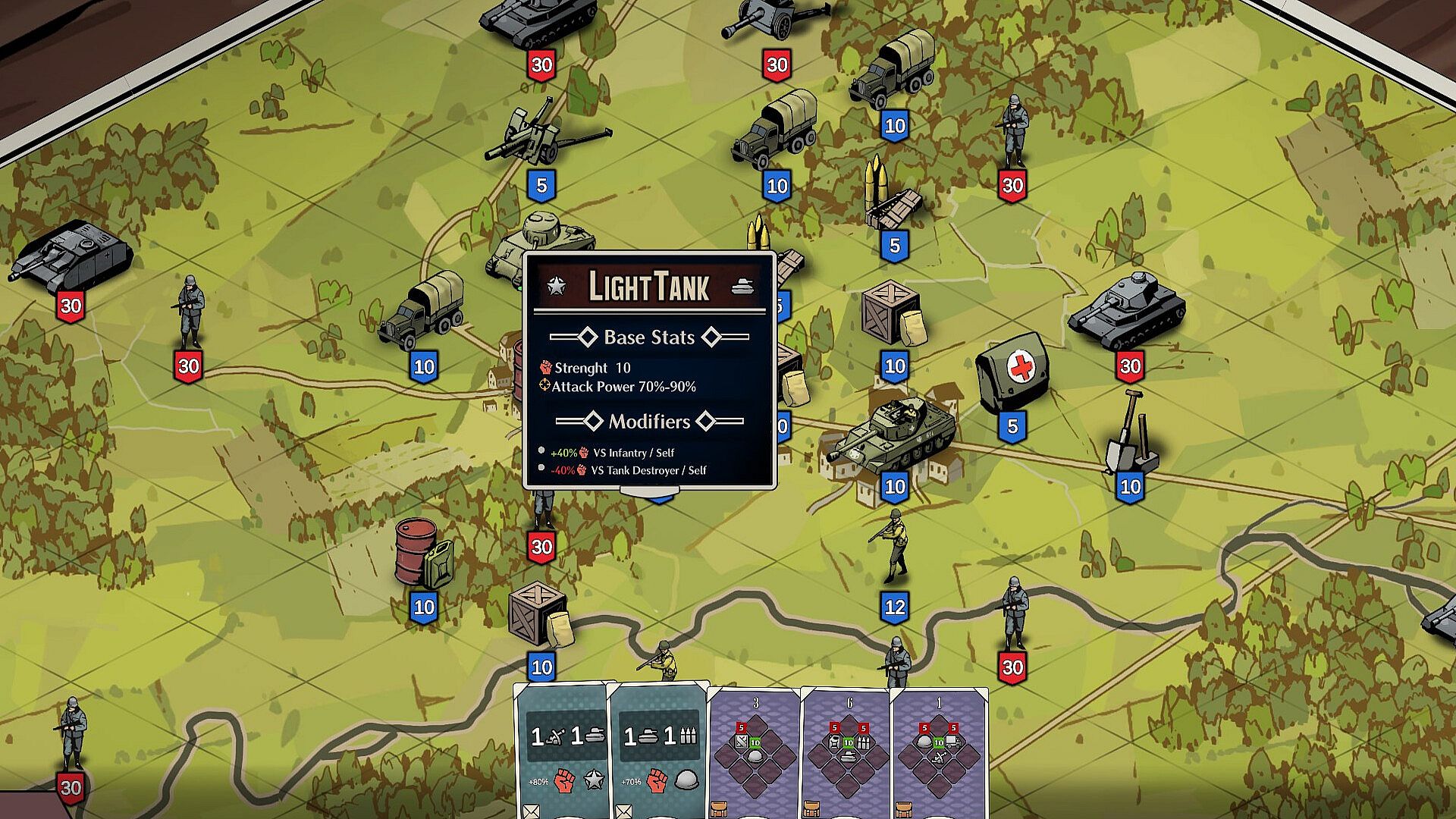 Panzer Deck is a 2D tactical card-based war game that thrusts you into the Western Front of World War II. Strategically deploy resources on the board to recruit units from infantry to tanks, and equipment like anti-tank guns or air support. Use maneuver cards to reposition forces, maximize their potential, and unleash powerful card combos that reflect unit synergy. Carefully positioned units, such as infantry backed by tanks or artillery , unlock unique abilities, letting you outmaneuver foes in critical battle moments.