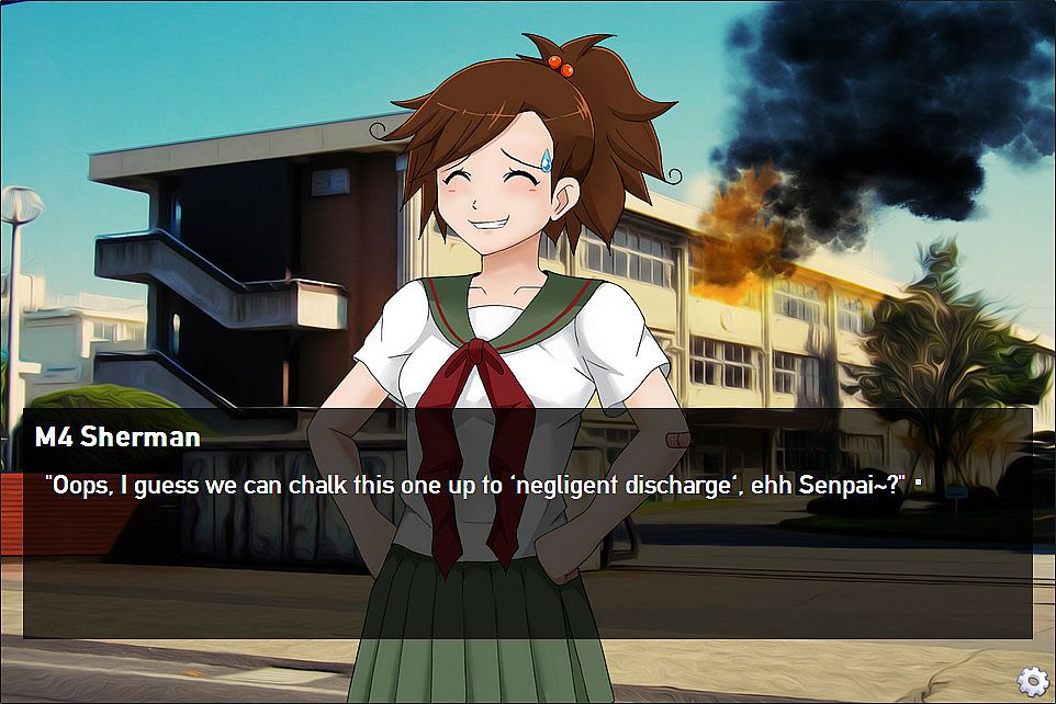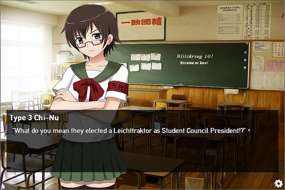 Instead of studying military history and doctrine, he's in "Basic Artillery Computations for Fire Support 101", and "Radio Operations 214". Will he win the heart of the tank-girls, or end up as cannon fodder? Only you can decide in, "Panzermadels: Tank Dating Simulator".