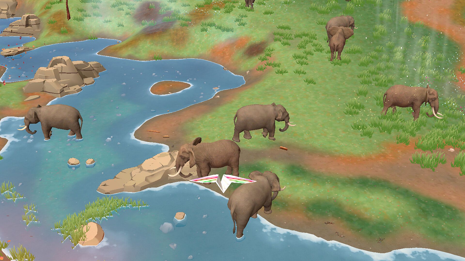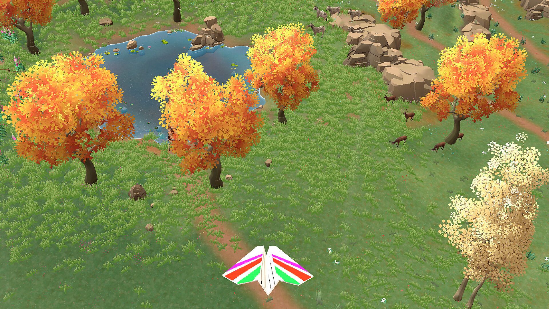 Peaceful world — populated with birds, animals, and soft ambient life.