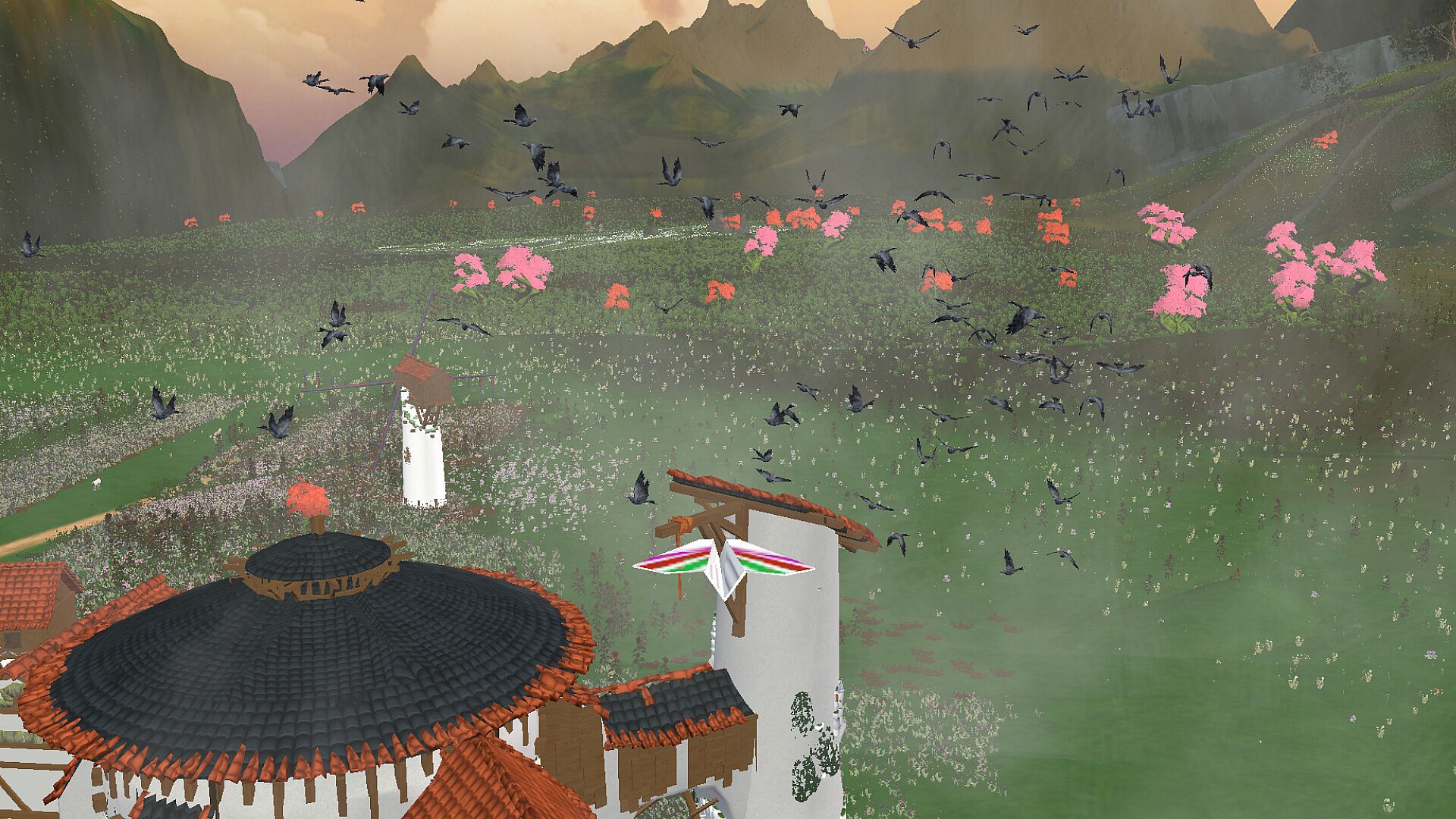 Unfold your wings and float through vast, hand-crafted landscapes — from quiet towns and shimmering lakes to distant valleys kissed by rainbows and moonlight.