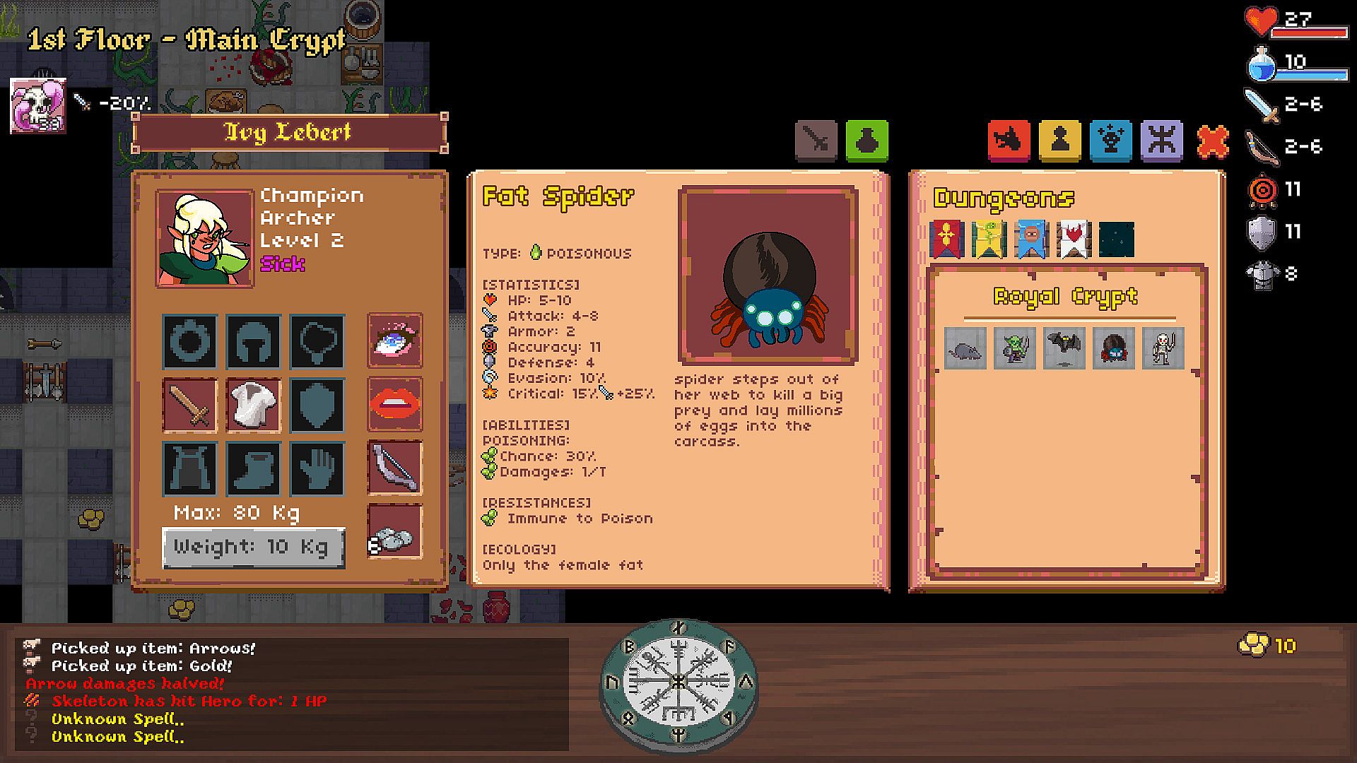 Our game is similar to classic roguelike such as Nethack, enhanced with an extensive interface and an intuitive fast access to melee, ranged or spell casting.