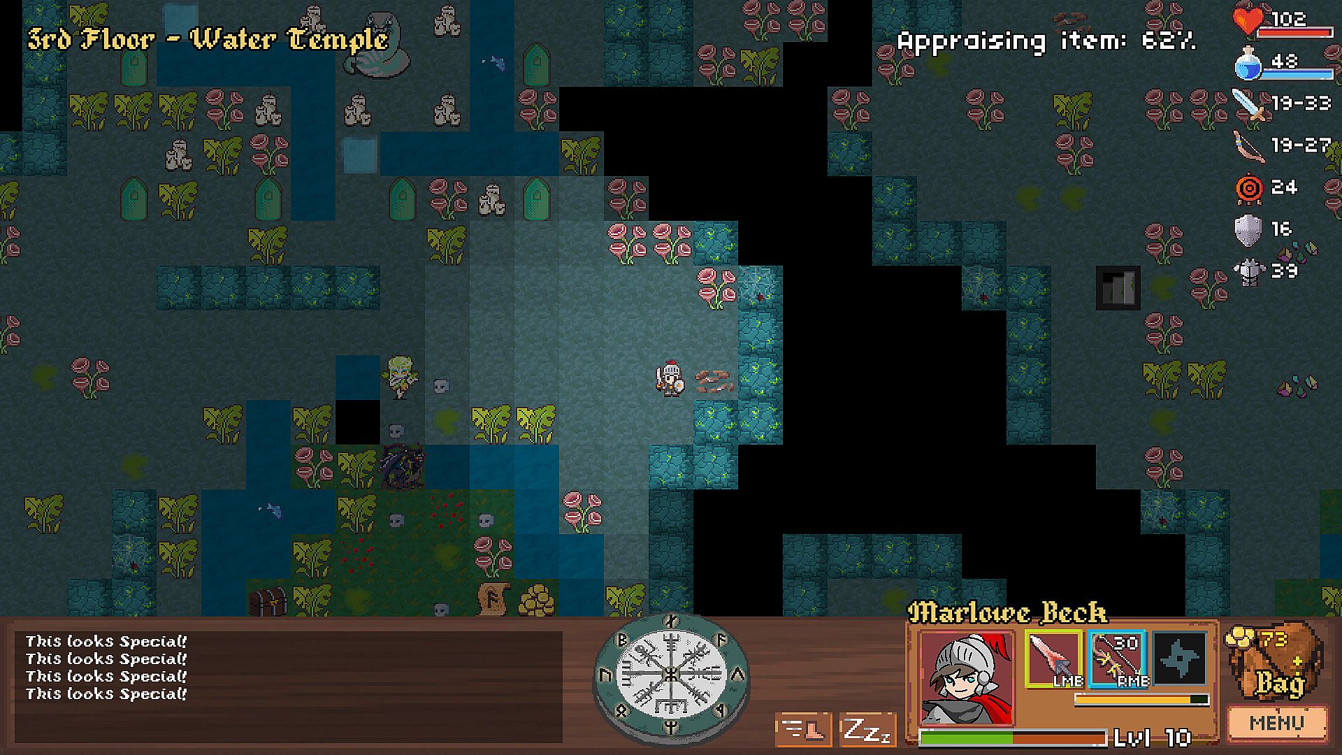 Permadeath, turn by turn gameplay, runecast system, hunger, random levels with predetermined land patches on each floor, 200+ equipment pieces to loot, cursed items and enchanted items, extensive inventory system, random potions, scrolls... and so much more to discover! The better to handle all situations