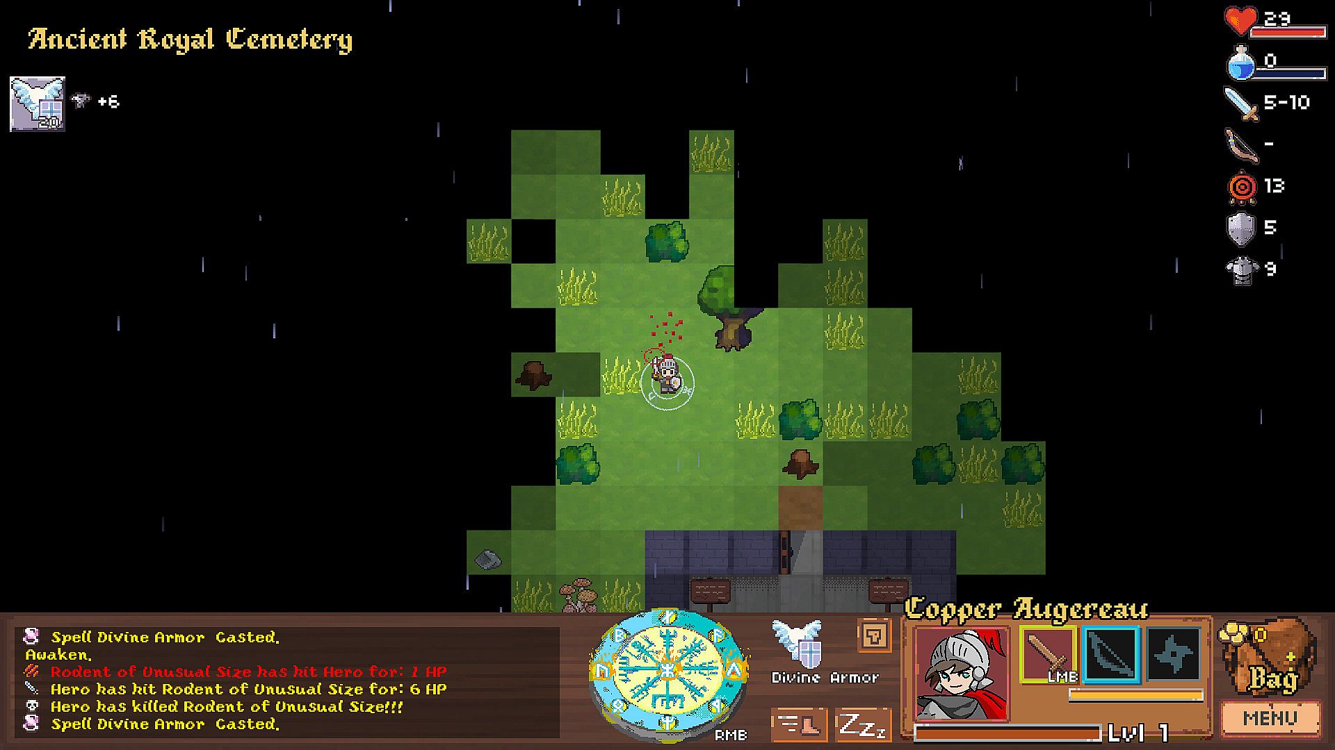 Dungeons can be unforgiving: be sure to eat and rest in time, use all your abilities wisely. Nothing stops you from skipping bosses to rush and move to the next dungeon, but you’ll also meet true death if you don’t take time to level up your character and abilities.