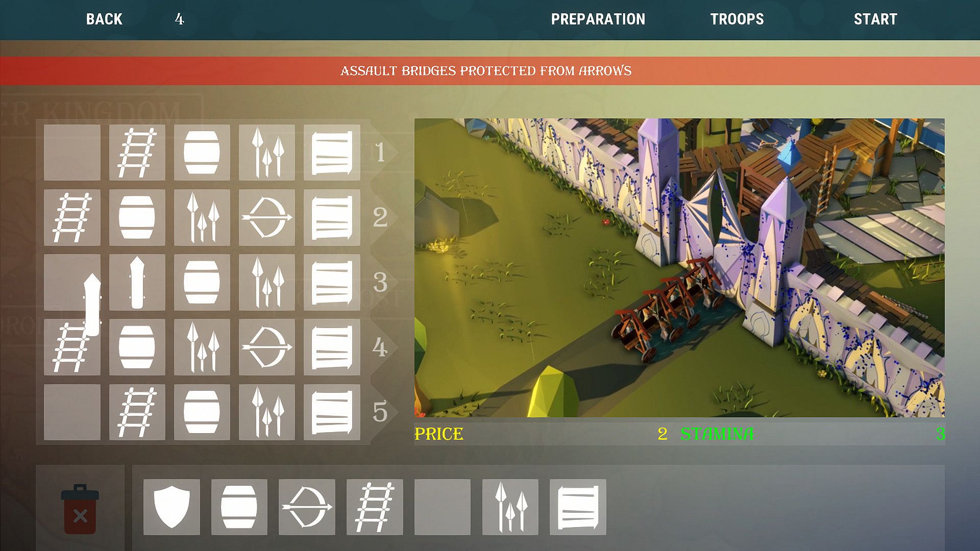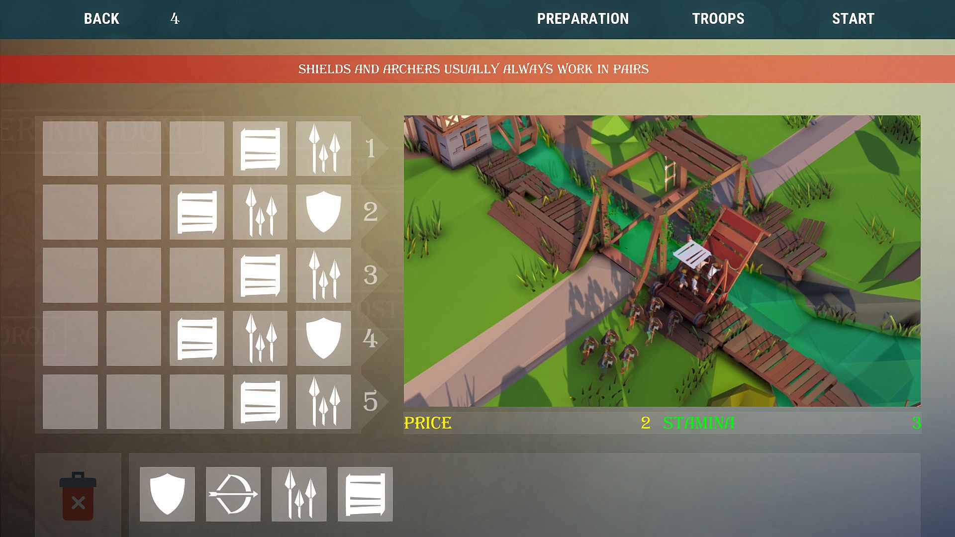 The game sets certain conditions at the stage of army formation. You are free to choose the troops and their formation by yourself. To line up a turtle bristling with shields so that no enemy arrow reaches the target, or opposite, to shower the defenders with heavy fire of their own arrows, so that they are afraid to even look towards your impending army - the choice is yours! Most importantly, do not forget that to counter the enemy's defenses on each of the attacking lines, you need to select the appropriate units in your own army.