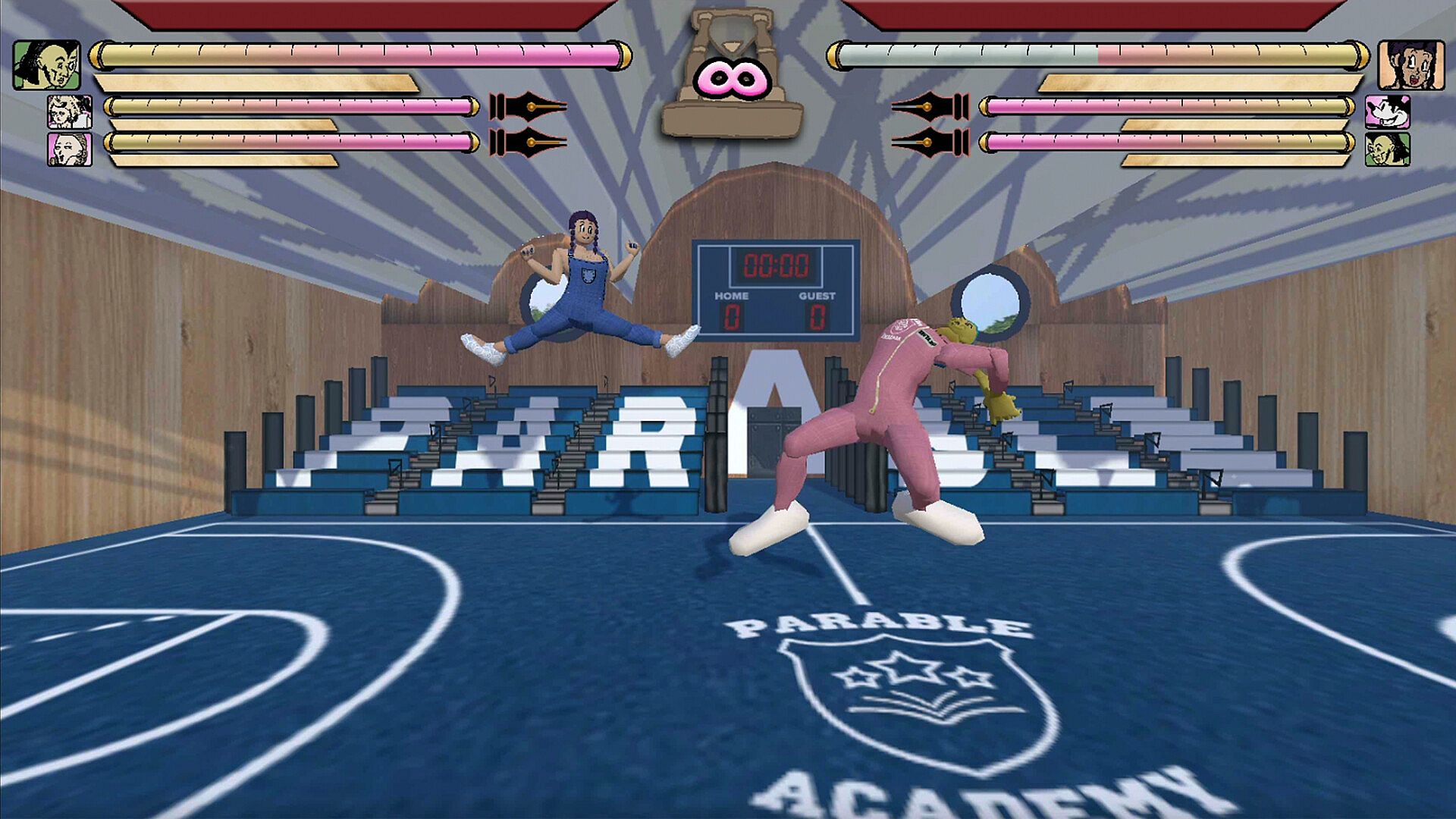 Parable Academy has full voice acting for all playable fighters, and unique storybook-style cutscenes for each character's Arcade Mode intro and ending.