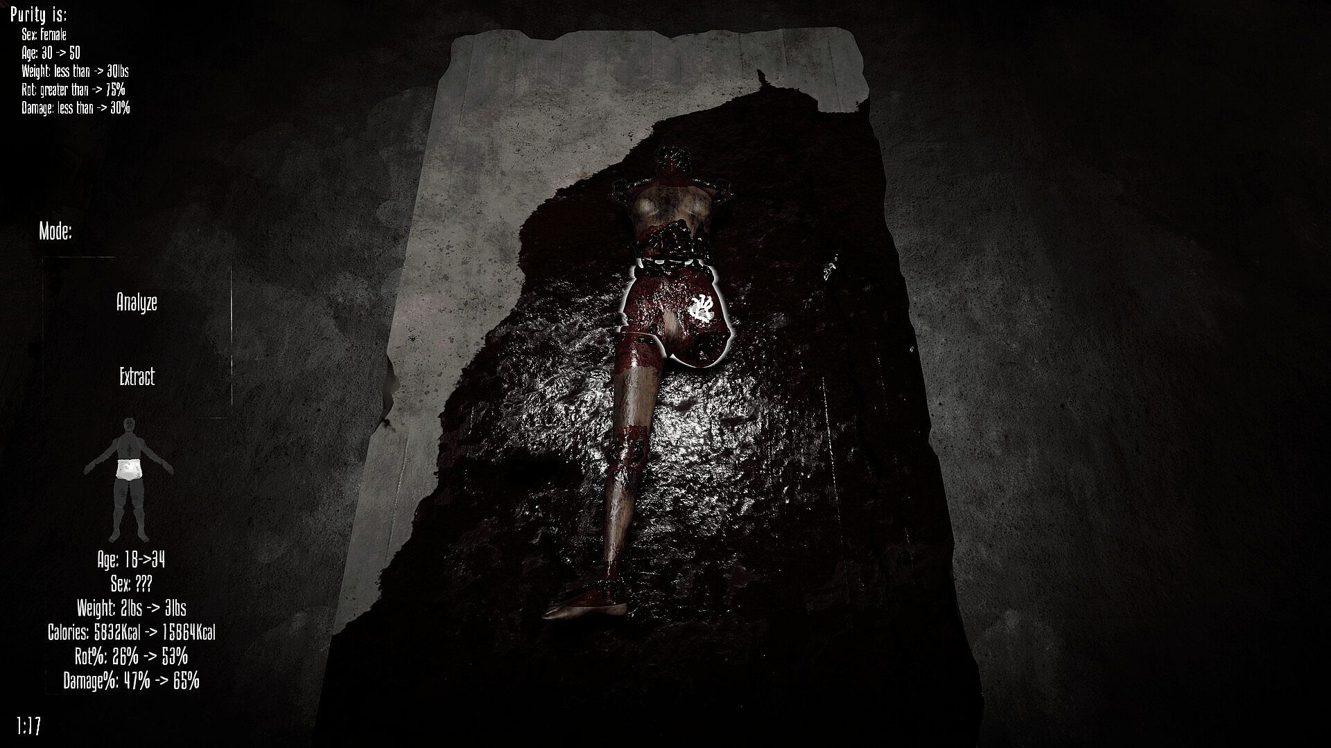 PARACESIUM is a body horror time management game where you collect, analyze, dismember and reassemble body parts in order to create a pure cadaver for your experimentation.