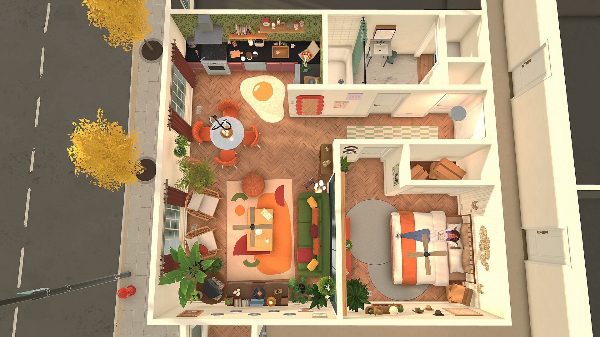 Thanks to an ever-evolving catalog of furniture, decor and clutter objects, staging the perfect homes for your Parafolks will be a breeze: resize, recolor, stack and place items freely for a tactile building experience.