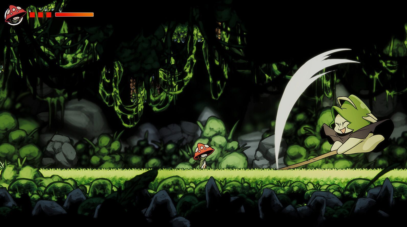 Follow the adventure of Kalen, a mushroom-like exiled princess, and immerse yourself in a journey through ancient forests filled with secrets and strange inhabitants, forgotten ruins, and, ultimately, greater foes like special bosses and untamed beasts.But she's not alone!