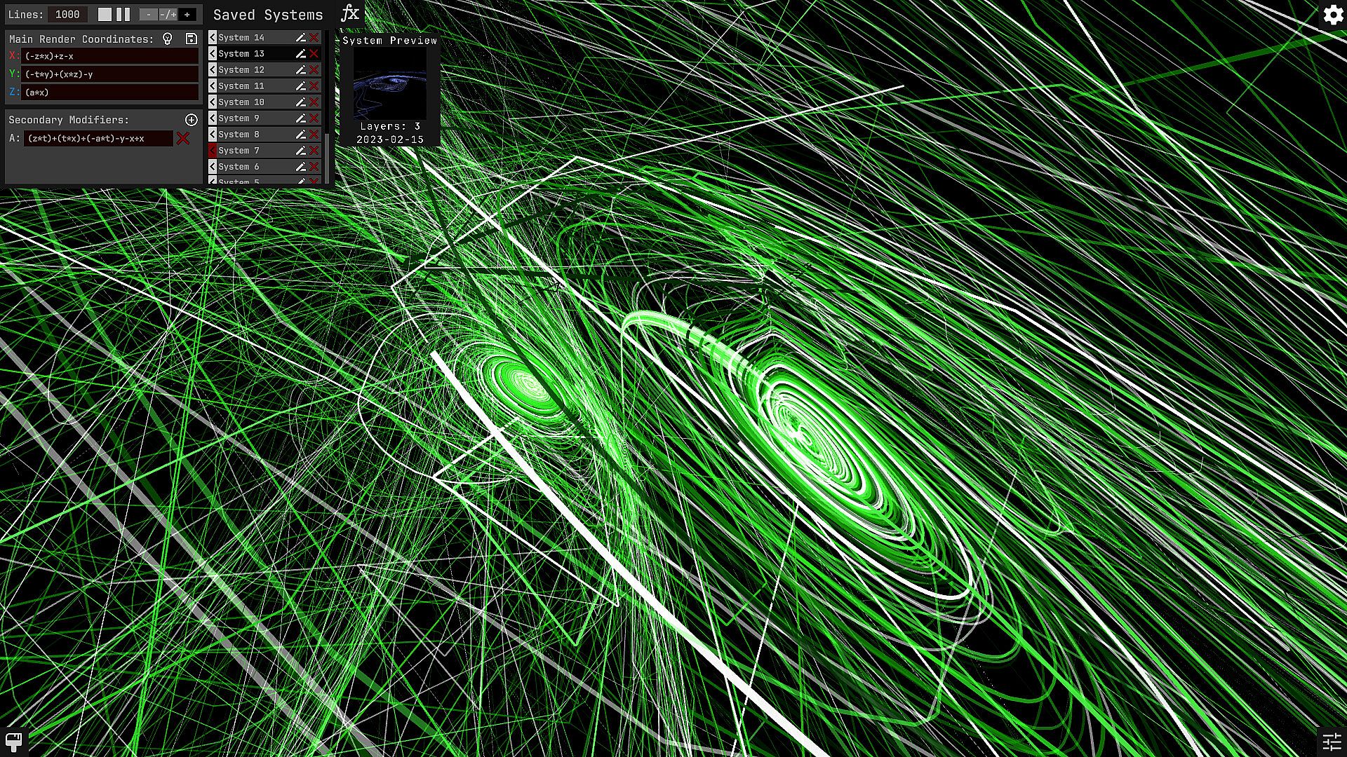 Parametric Engine delivers a casual simulation of chaotic discrete dynamic mathematical systems that evolve over time. Players generate intricate, mesmerizing patterns through predefined and customizable setups, with no math background needed. An automatic randomized creator sparks fresh systems instantly, while extra variables beyond three dimensions fuel endless tweaks. Experiment with color schemes and save your creations to build cinematic scenes effortlessly. This simulation suits creators drawn to artistic pattern generation and discovery. PC players find pure creative flow in its dynamic, pattern-revealing mechanics.