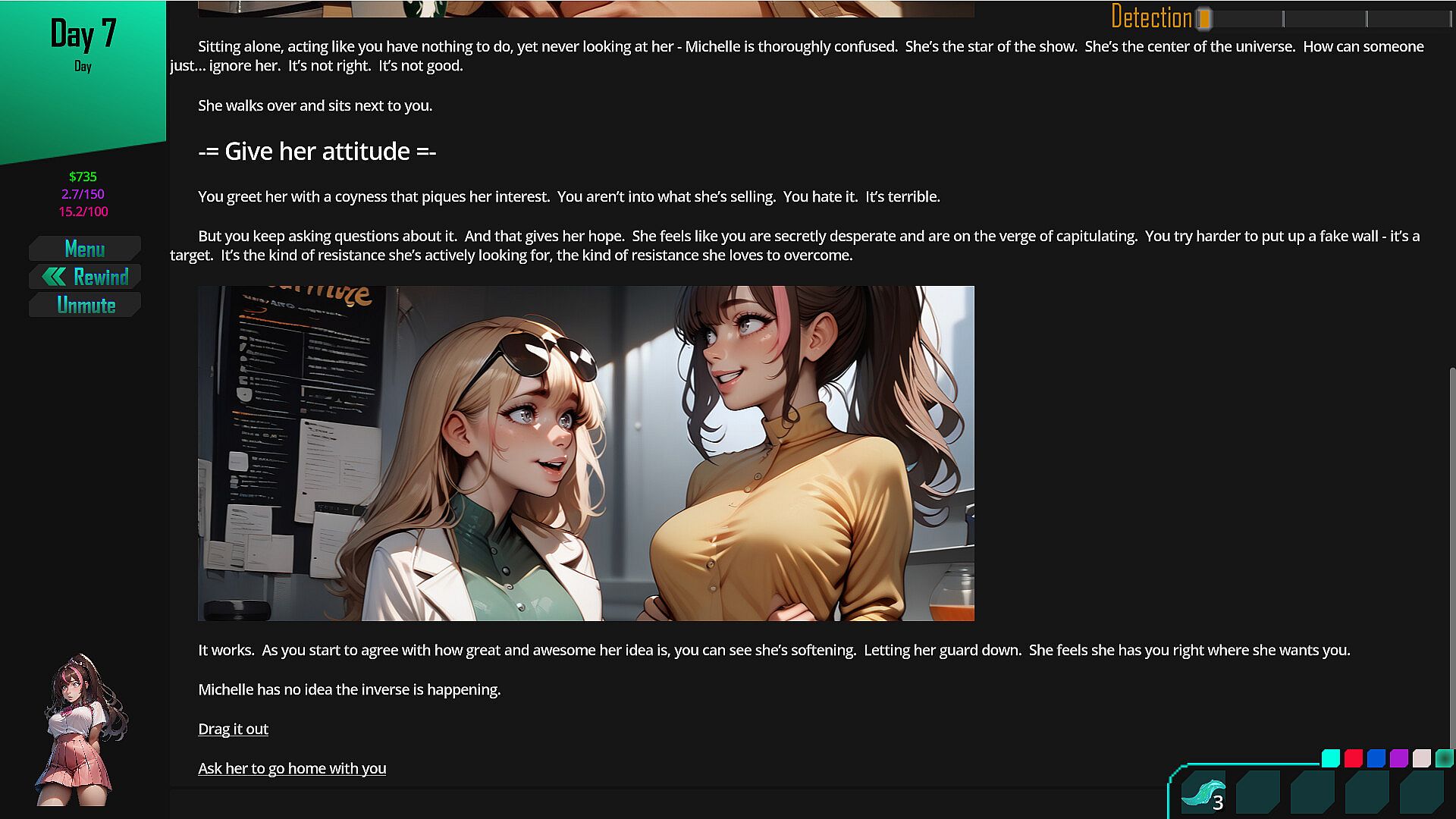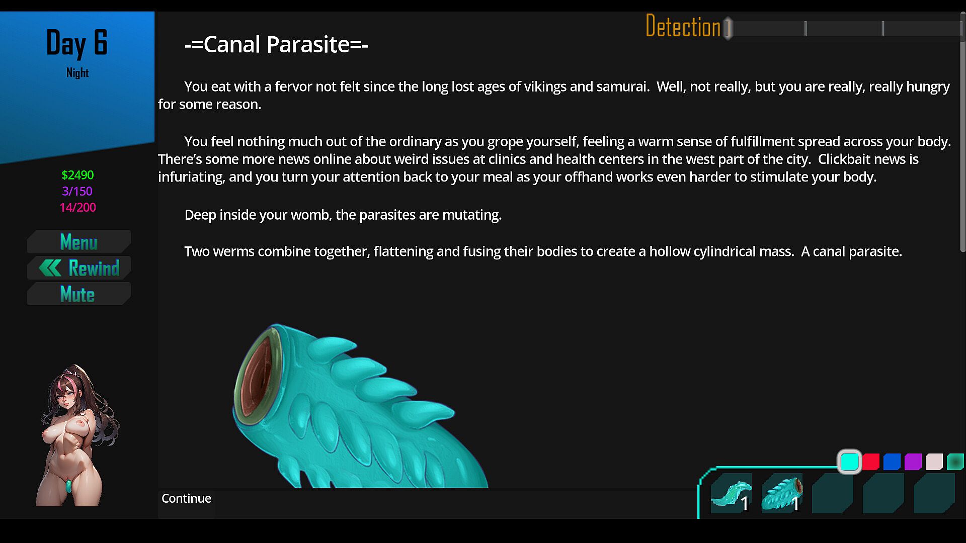A choose your own adventure sci-fi game involving parasite symbiotes, body modifications, mind control, bondage, and a plethora of other sexual fetishes. Progress through the story, handle/unhandle/release parasites to advance the plot to discover what happens to a group of friends in the middle of an alien parasite takeover of the planet Earth.