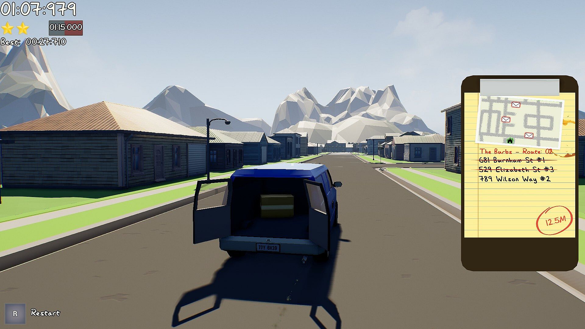 Hone your package throwing skills in the training mode. Explore maps, routes and test strategies. You'll get detailed information about world position and velocities in this mode along with a package follow camera to track your trajectories.