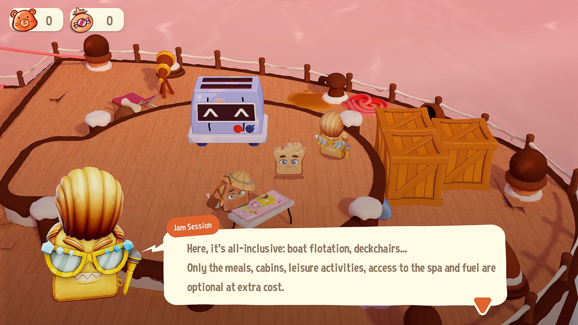 FRIENDLY TOASTS EVERYWHERE - You're not alone on this cruise; lots of other toasts are along for the ride! Get to know them: they’ve all got a good reason for being there. Maybe you can help them?