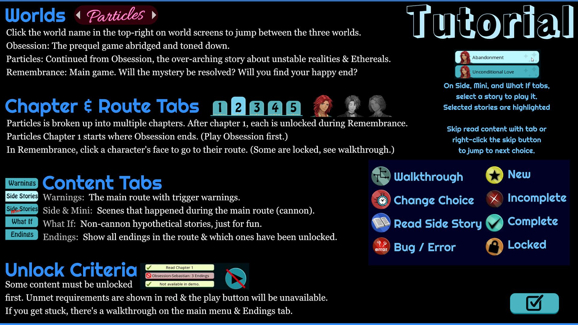 This game is the second World called "Remembrance". The first was "Obsession." Each world is its own universe and unique story. Obsession & Remembrance plot lines are not related in any way. Only the Particles mystery & Ethereal beings connect them.