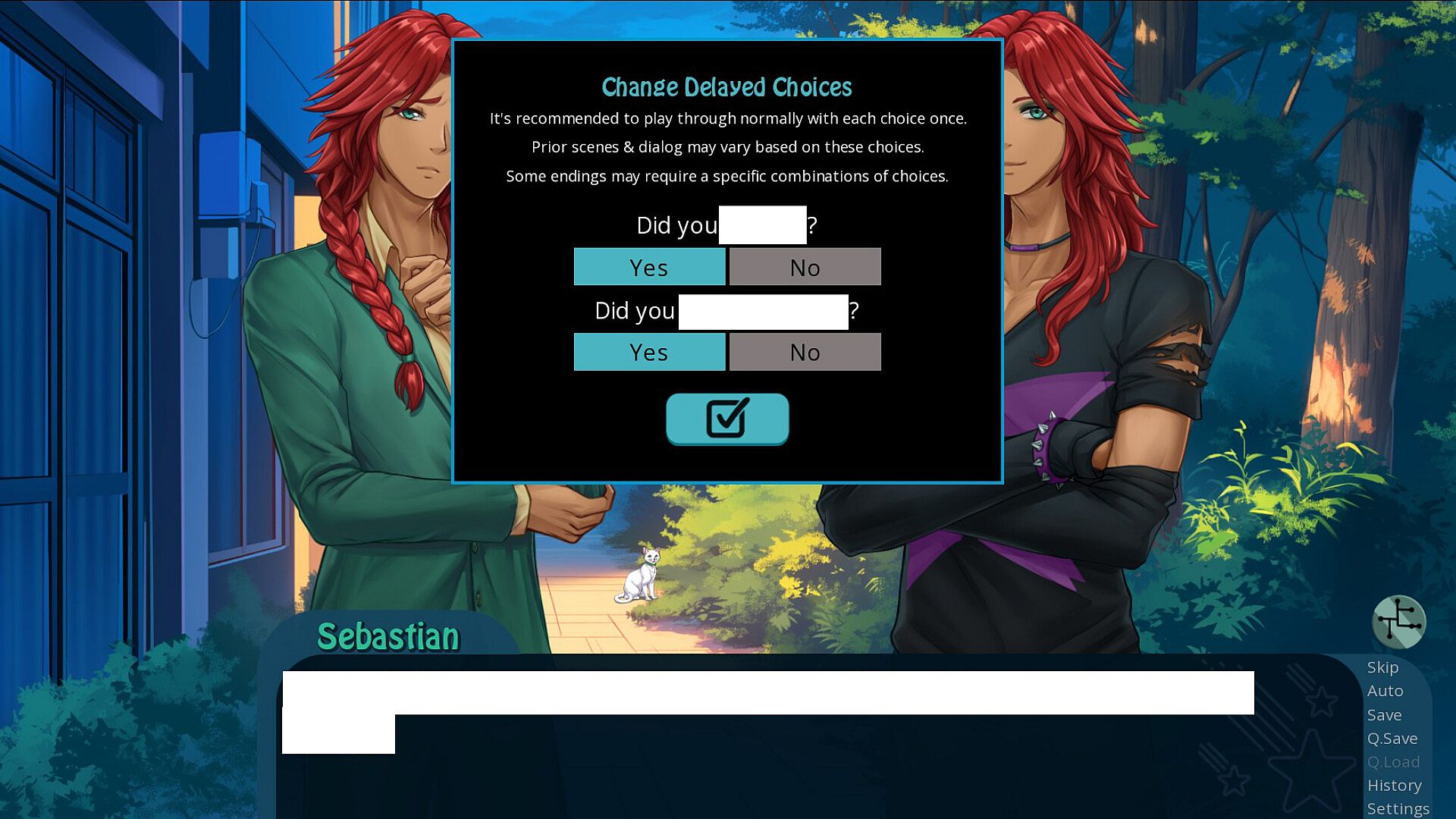 All the love interests have their own new goals, values, morals, agendas, and motivations. These may have changed since Obsession. Not all may be in your best interests.