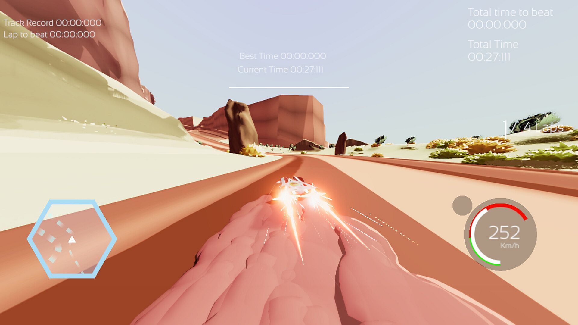 Simple Gameplay, slide accross the tracks at high speed, enjoy the various environments, Deserts, Mountains and Mediterranean landscapes !