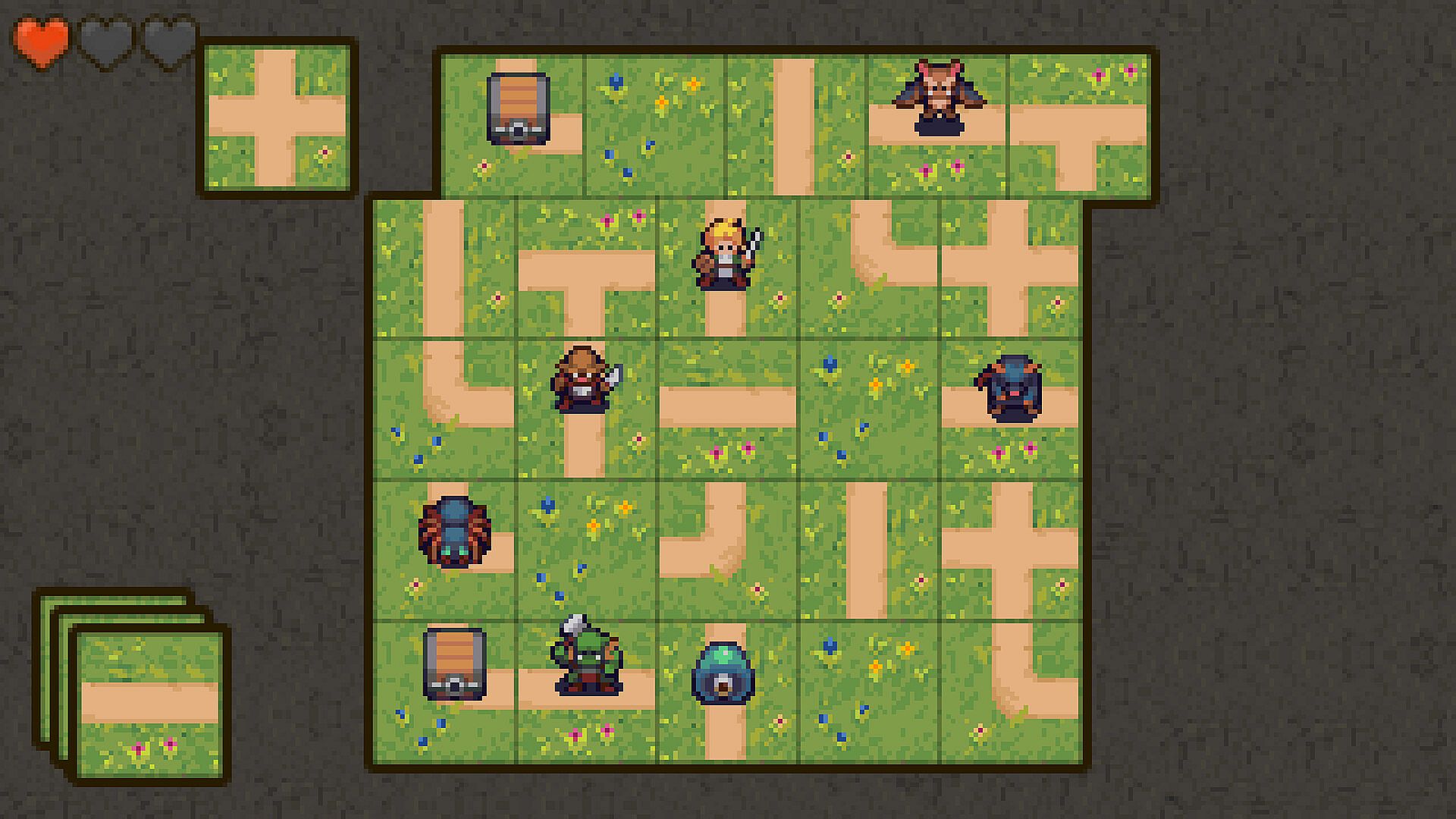 In Patch Hero, every step you take is one you create. Place tiles to shape the battlefield, carve paths through dangerous terrain, and uncover hidden rewards. But beware—enemies move when you do, and each patch you place could bring you closer to victory… or to defeat.