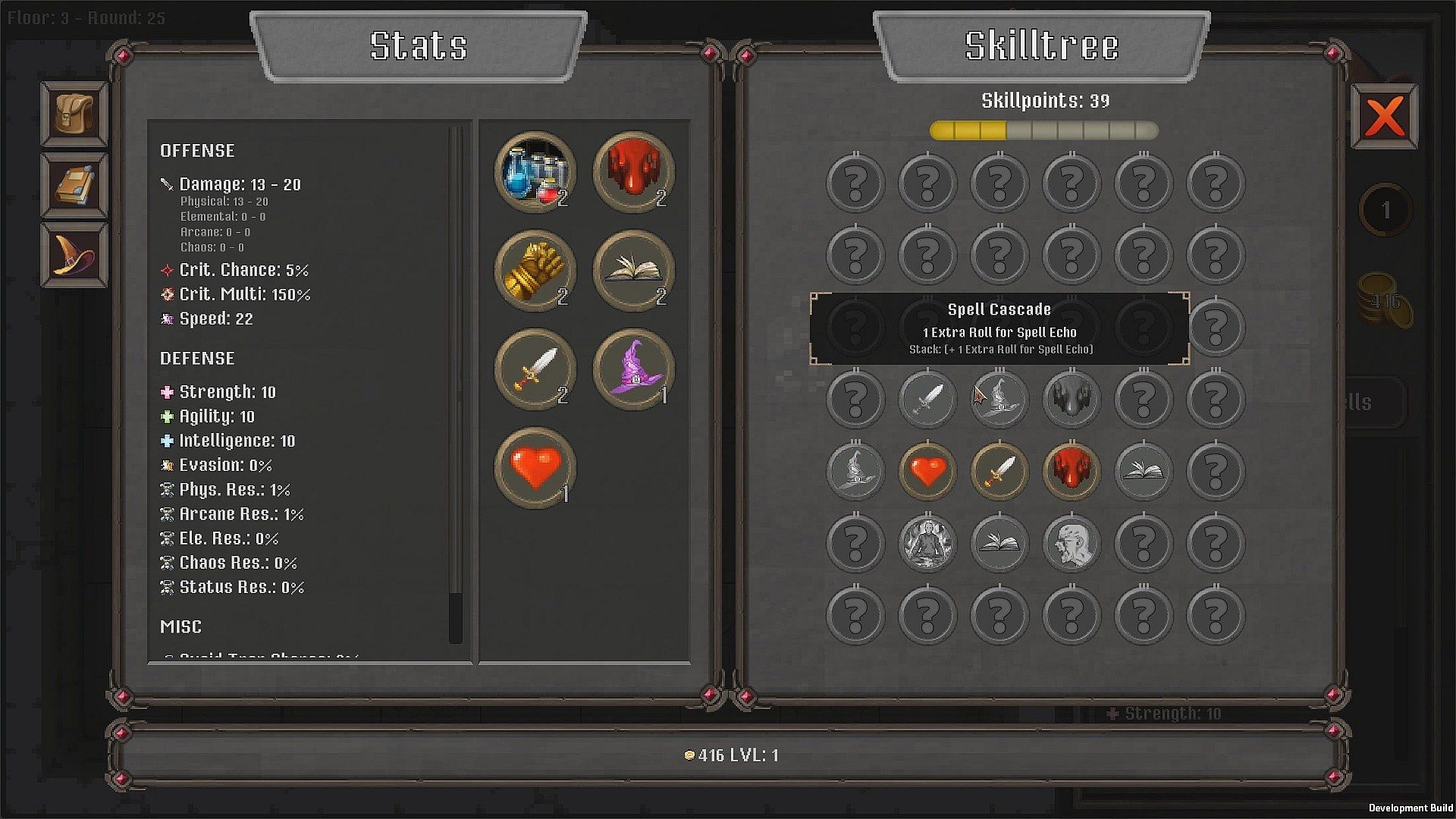 A randomly generated skill tree helps you to choose a direction for your playstyle. Everytime you spend 9 skillpoints a new tree is generated.