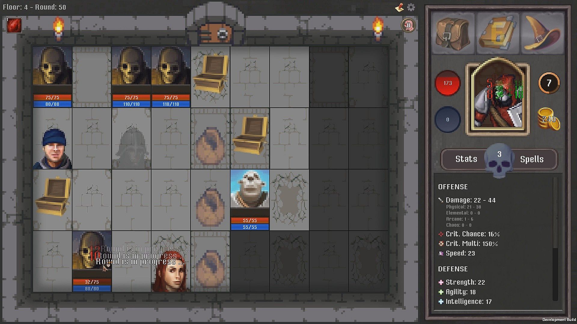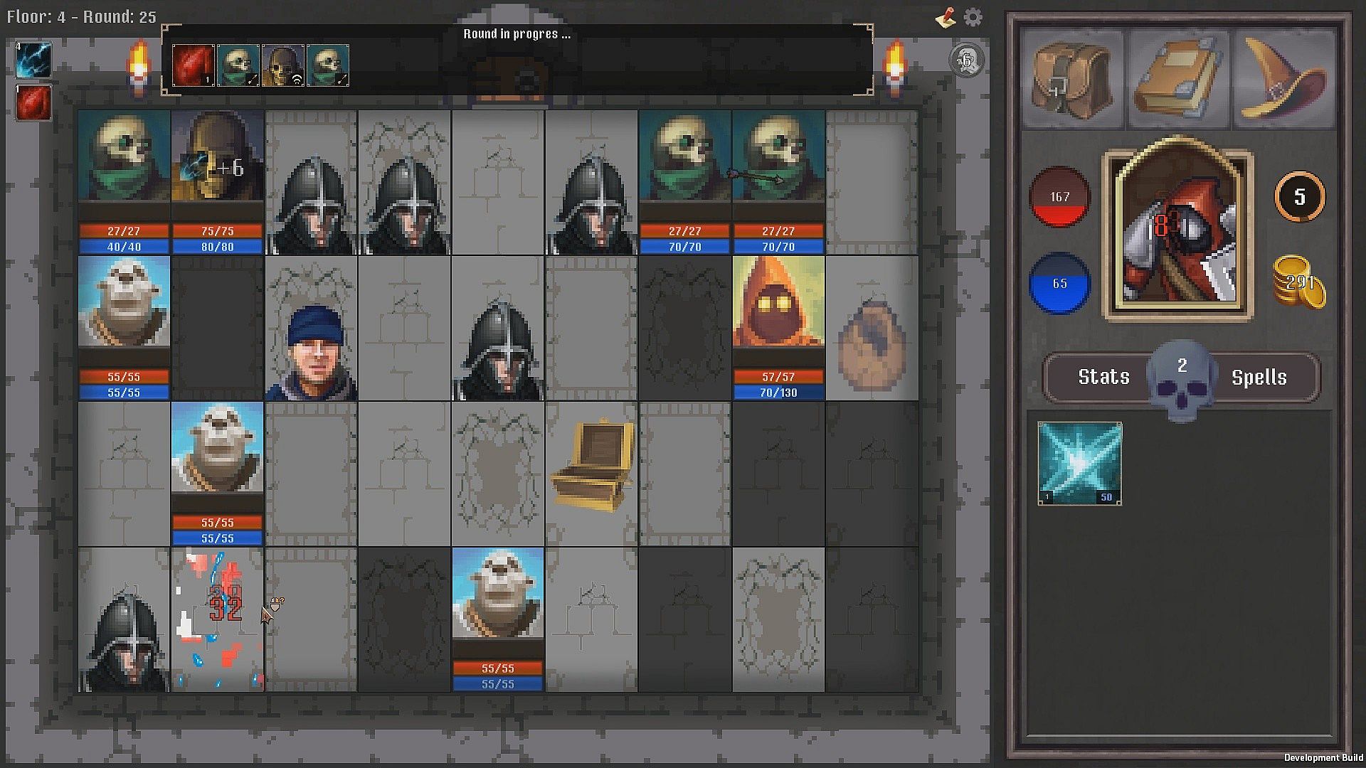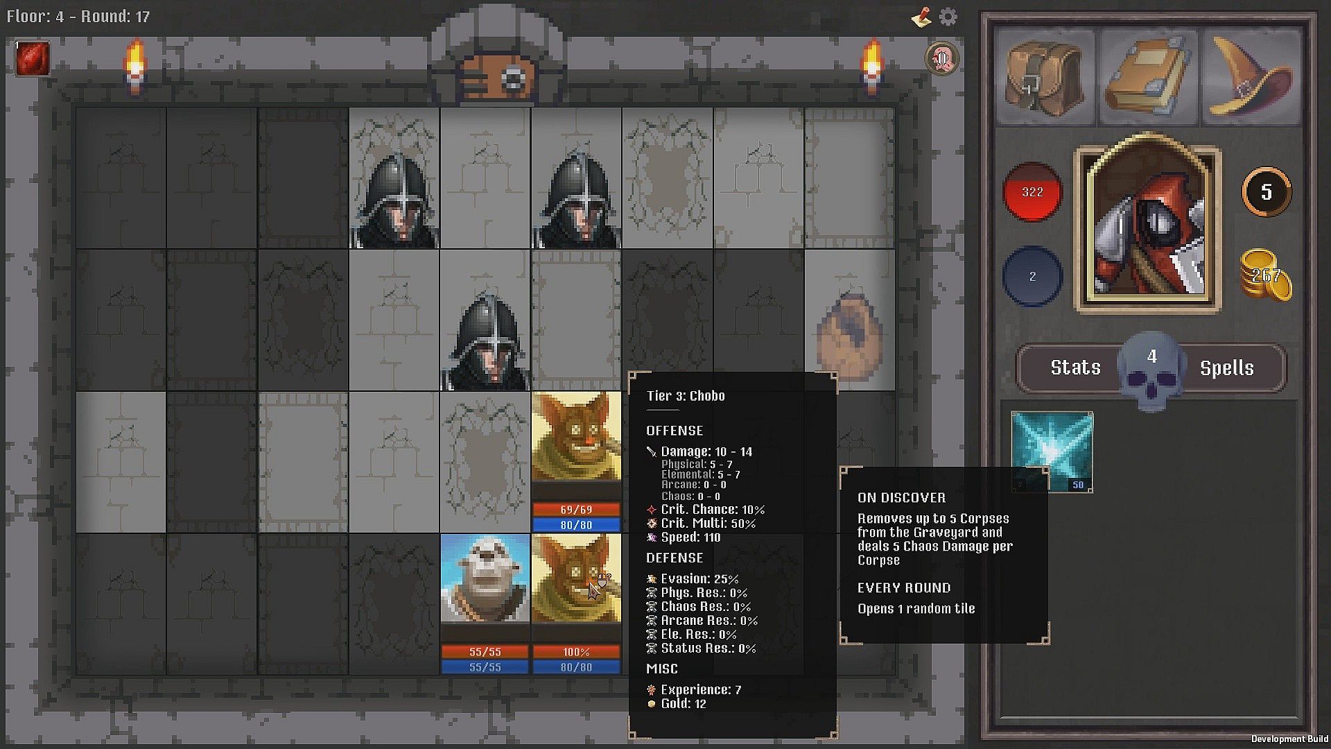 and they get random abilities as the game progresses. Abilities can trigger on discover, on death or every round. Enemies are also able to cast spells.
