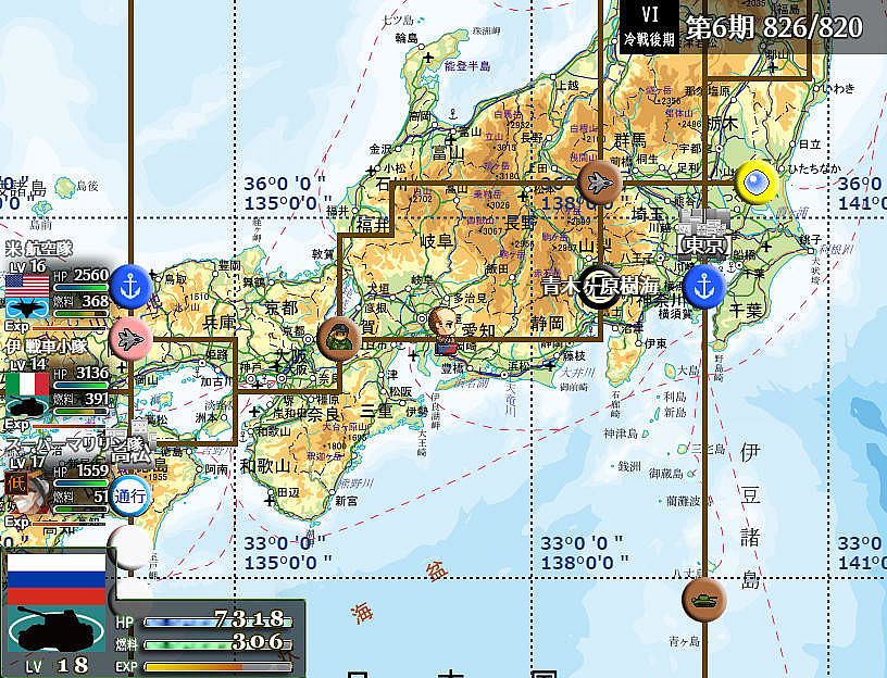 速度や燃料(航続距離)が低い兵器が混じっていると、部隊全体の足を引っ張るので気をつけよう。上の画像のような組み合わせだと、人目は引いても、戦力にはならないぞ。
