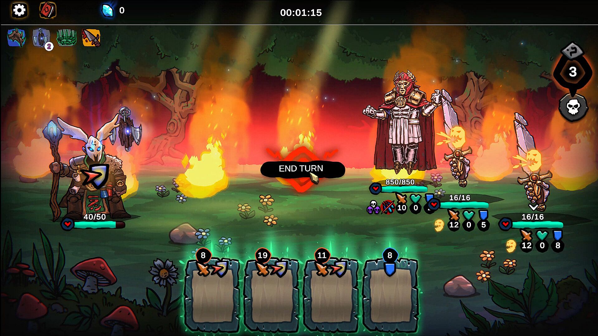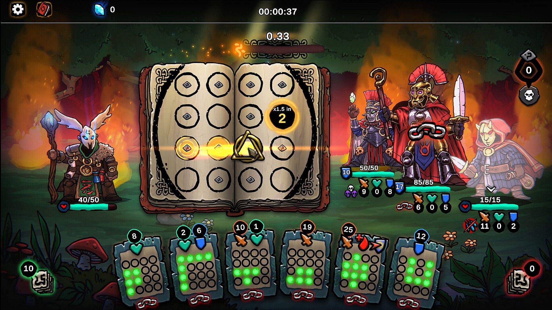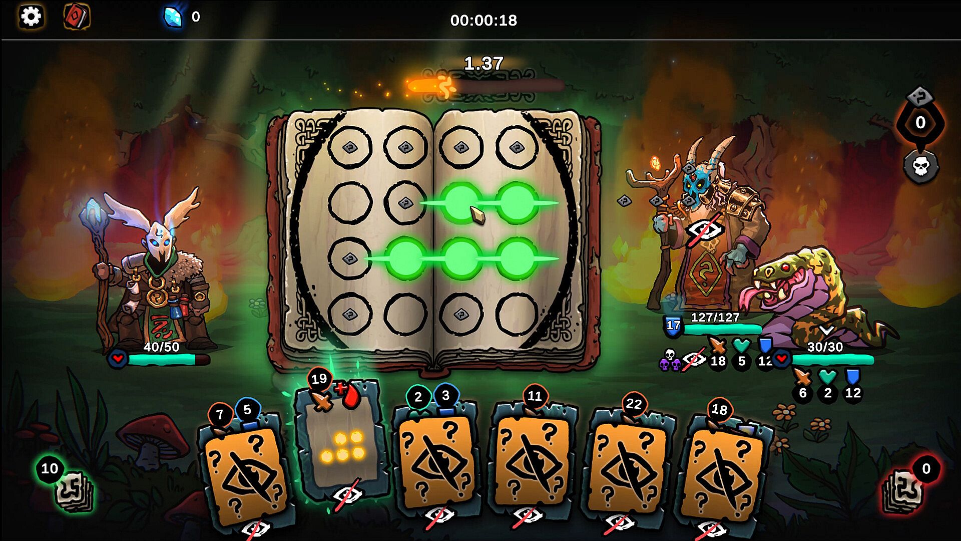 Skill based casting: No mana costs. Cast as many spells as you can by matching their patterns before each turn’s timer runs out.