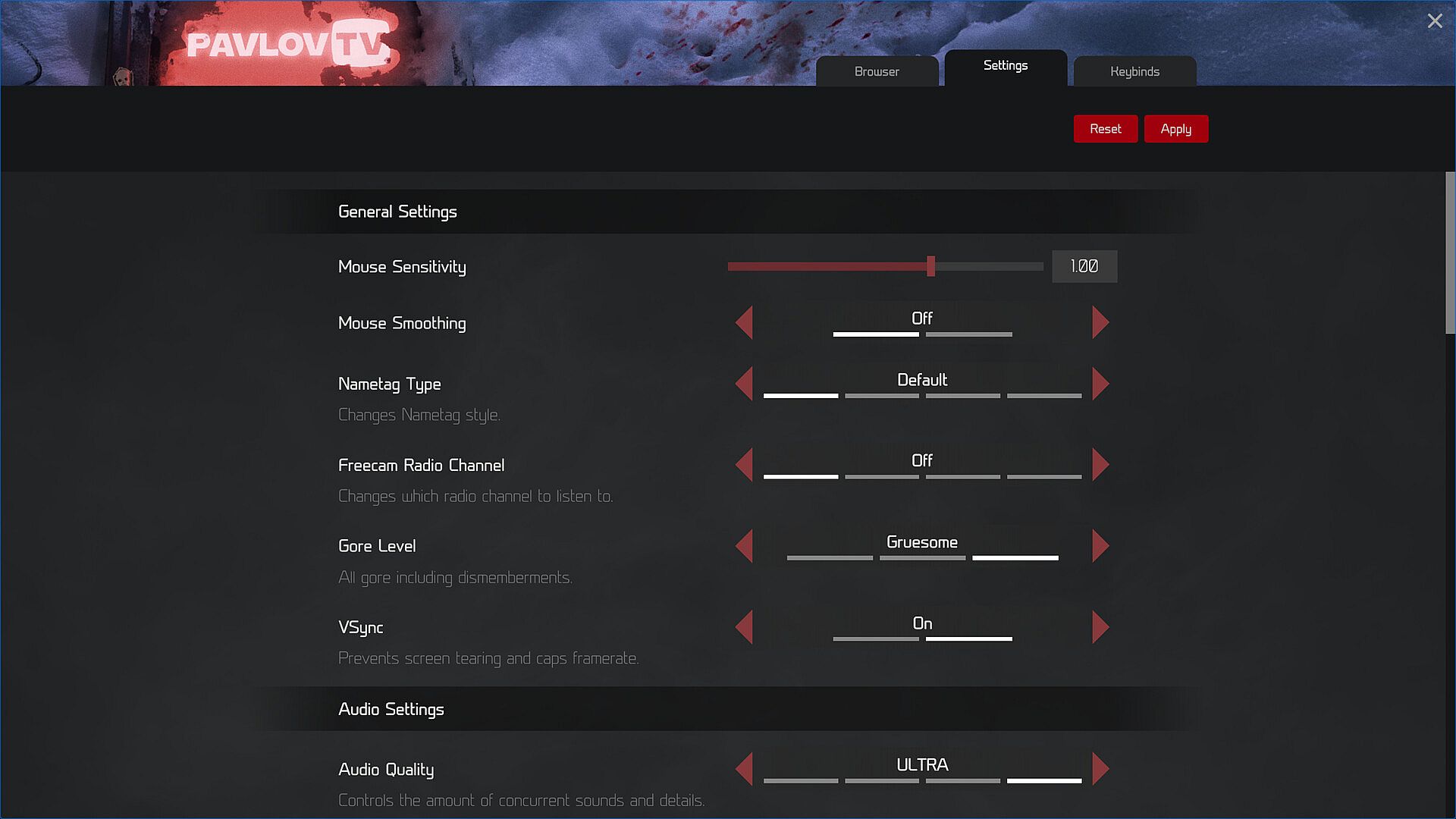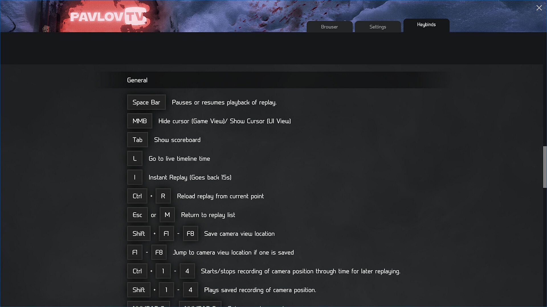 Nearly every possible function of Pavlov TV has mapped key binds. These can be changed in Steam Input to customize to your own preferred binding map.