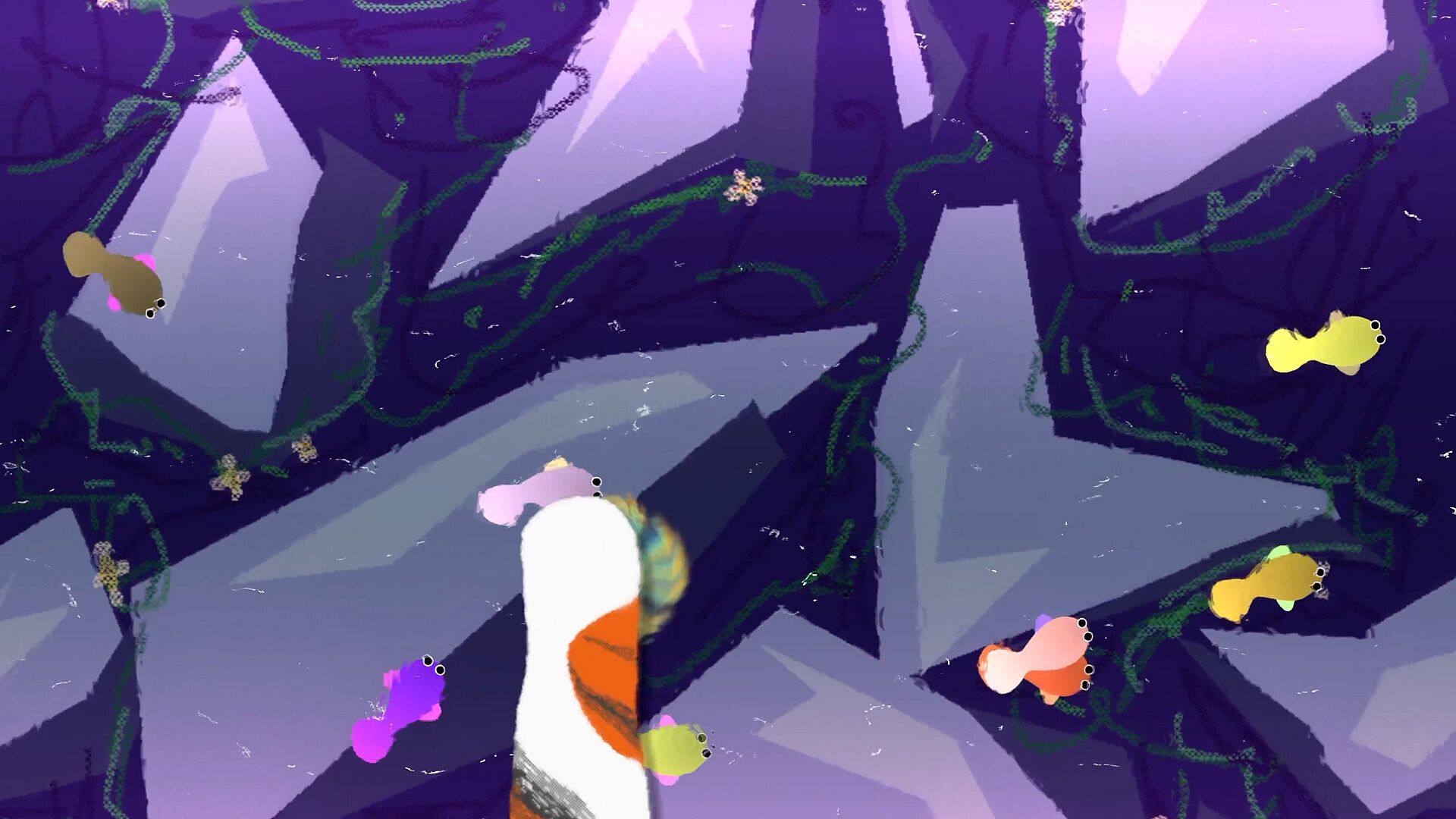 Creative Drawing System: Freely draw fish and cat paws on the canvas.