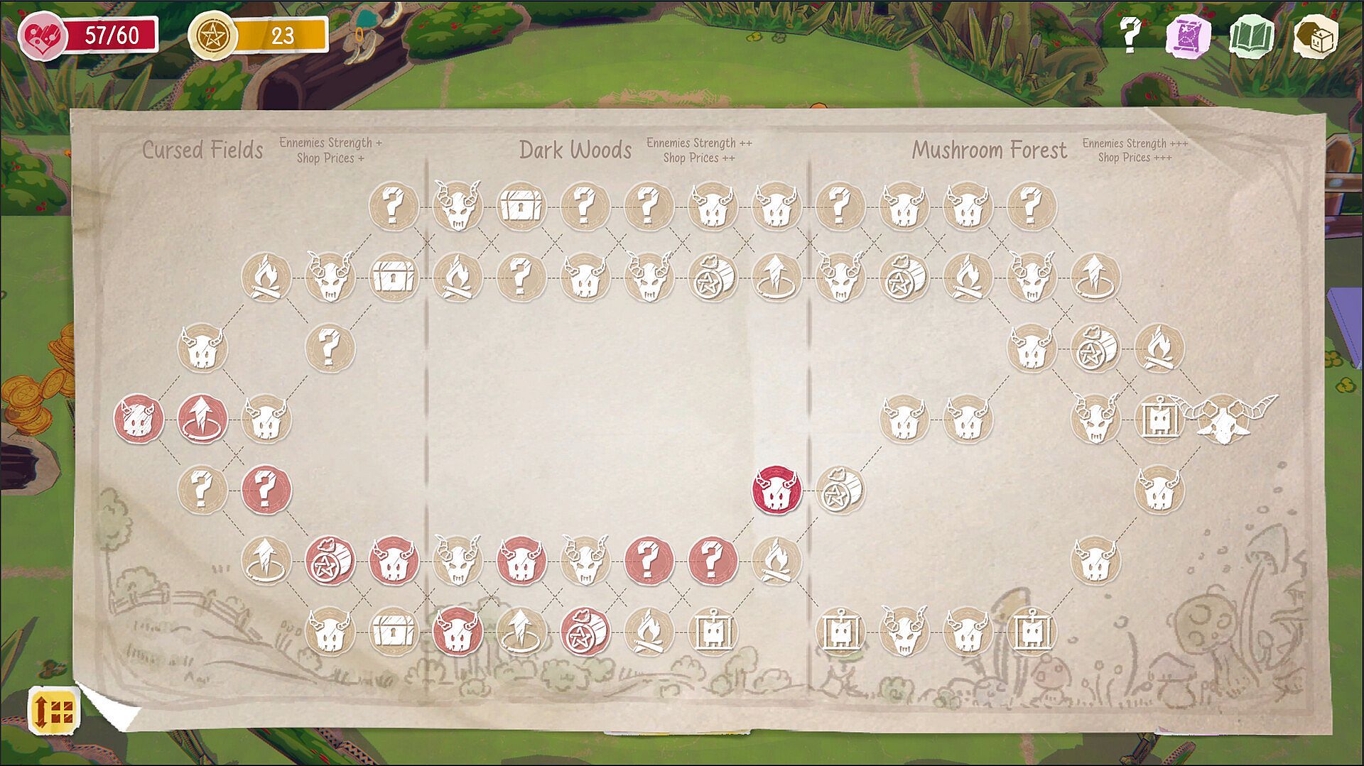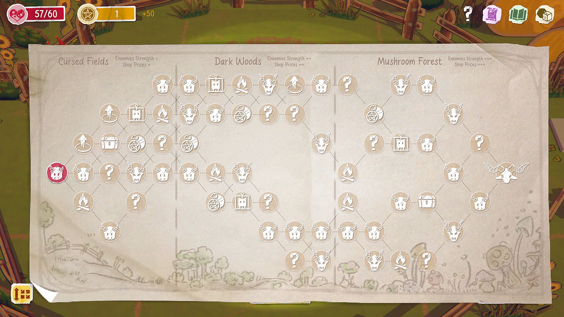 Choose your path on the map and increase your power! Add new dice, level them up, pick up items, greed... every choice will get you closer to the end, and maybe to victory.