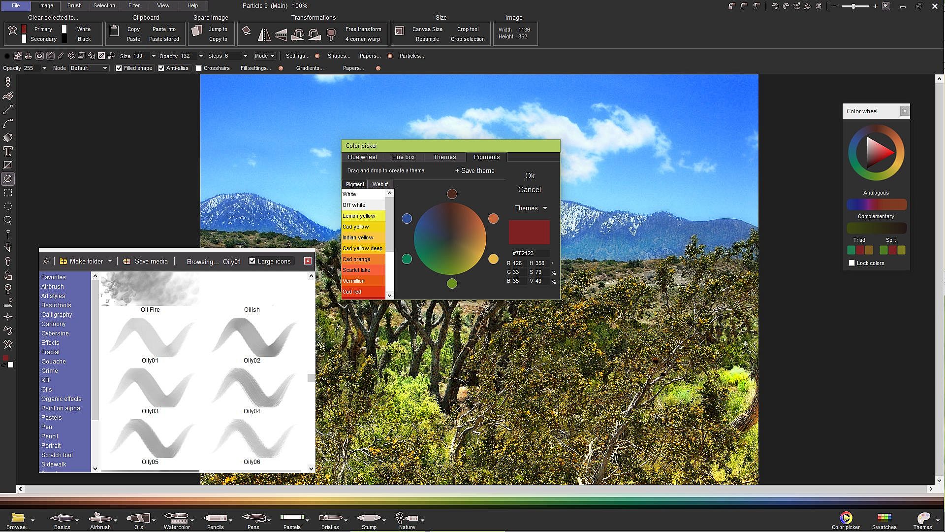 - Natural media: many presets, very customizable with opacity, step distance, speed-based scale, random position, scale and angle, random hue and more, color bleed, dryout,...