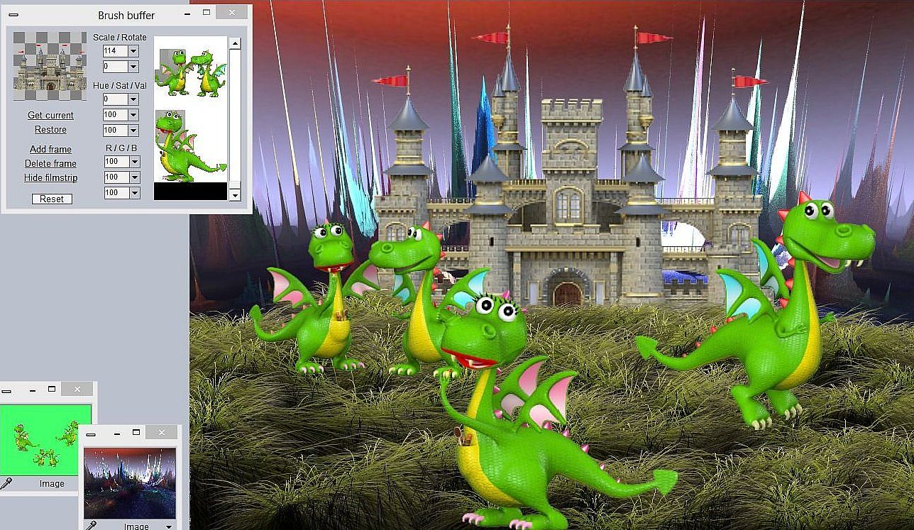 - Brush keying to map color(s) to transparency in the brush