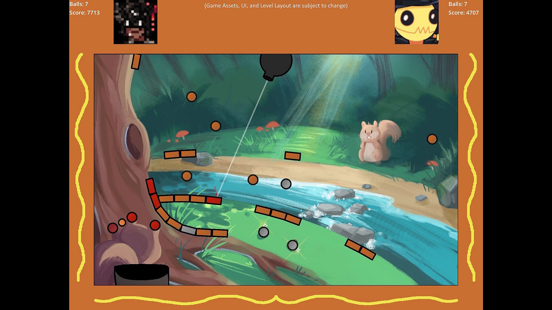 Prepare for a multiplayer puzzle game that will put you against a friend to see who can achieve the highest score by hitting the most pegs with the furthest shots!