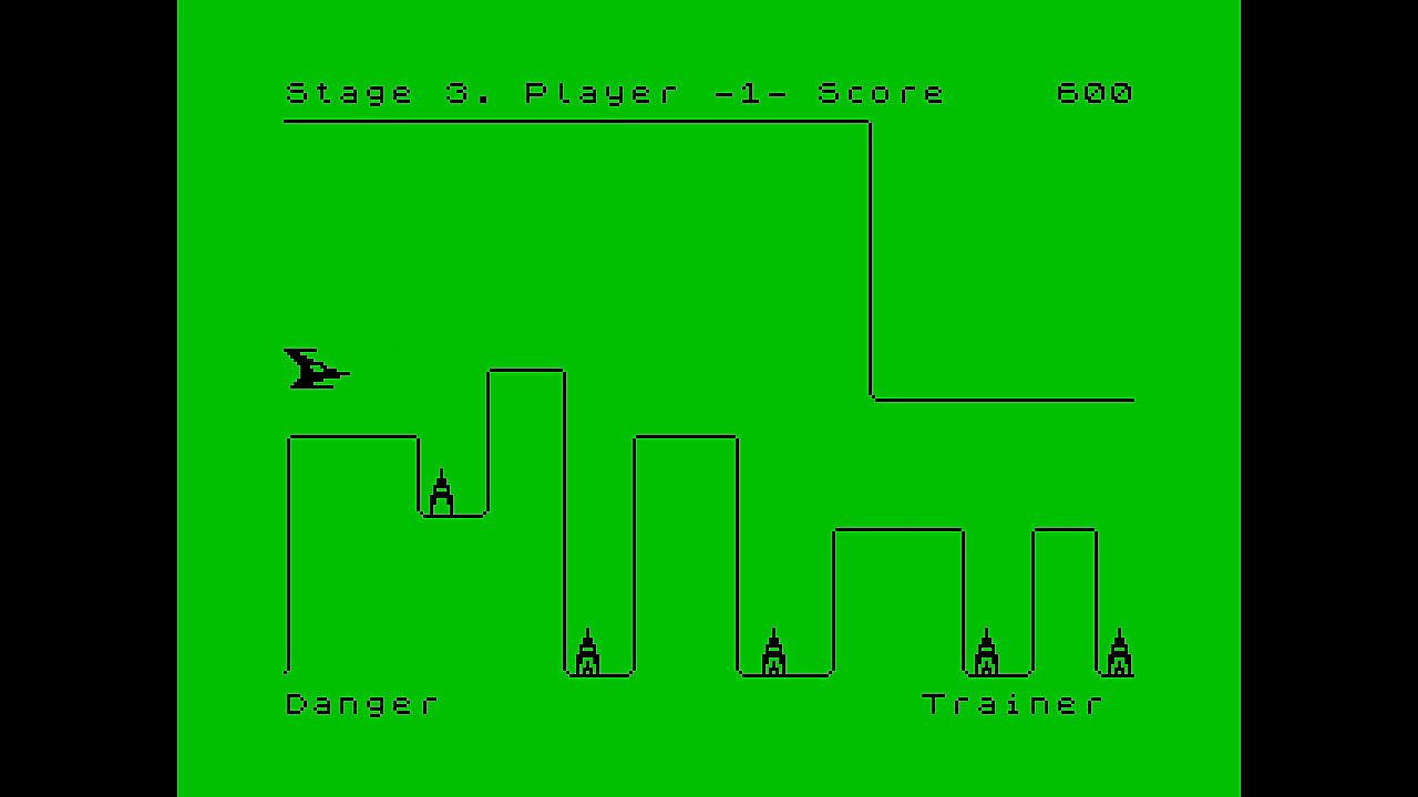 Steer your spaceship through continuously scrolling levels that flow seamlessly into each other, to reach and destroy an illegal cache of neutron bombs. Dodge the mountains and, in later levels, the cavern ceiling. Deadly missiles fire up from the ground at your craft. Fire back at them, and drop bombs to destroy radar bases. Each level becomes more and more difficult as you are challenged to weave your ship through tight, narrow corridors.The game contains a level editor, which allows you to modify the first 4 levels, changing the floor and ceiling, and adding radar bases and missiles.
