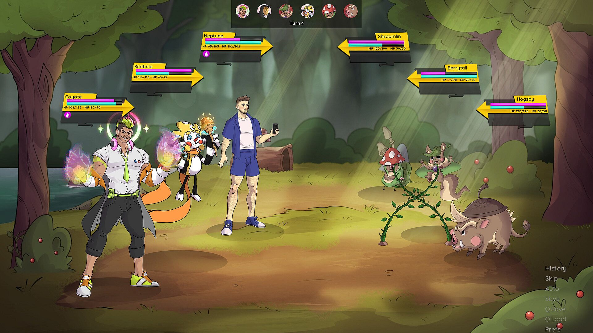 A cozy western bara visual novel with RPG combat, where you can mix-and match a party of diverse relatable characters, and customize them.​