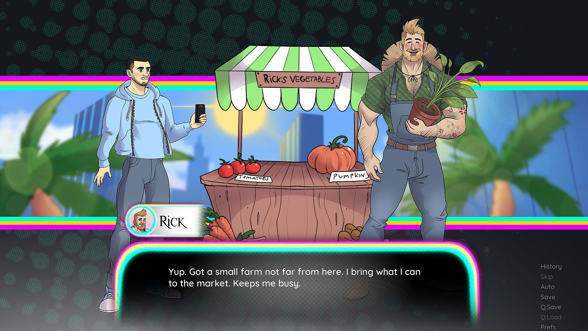 This game exists because I wanted to play it and could not find it anywhere. There are fun, light-hearted bara visual novels out there, and I love them, but most of them are story-only. I kept wishing for something with actual gameplay, even if simple.