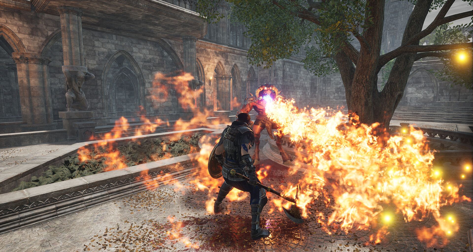 You travel between lands looking to destroy Abbadon, the Cursed King. Purging enemies gives you souls that enhance abilities. You can also collect new abilities that increase Desolation Blade’s damage while it bursts into flames. Collect powers to protect yourself from damage while in combat. Dodge attacks or use the Blessed Shield to block and retaliate against enemies.