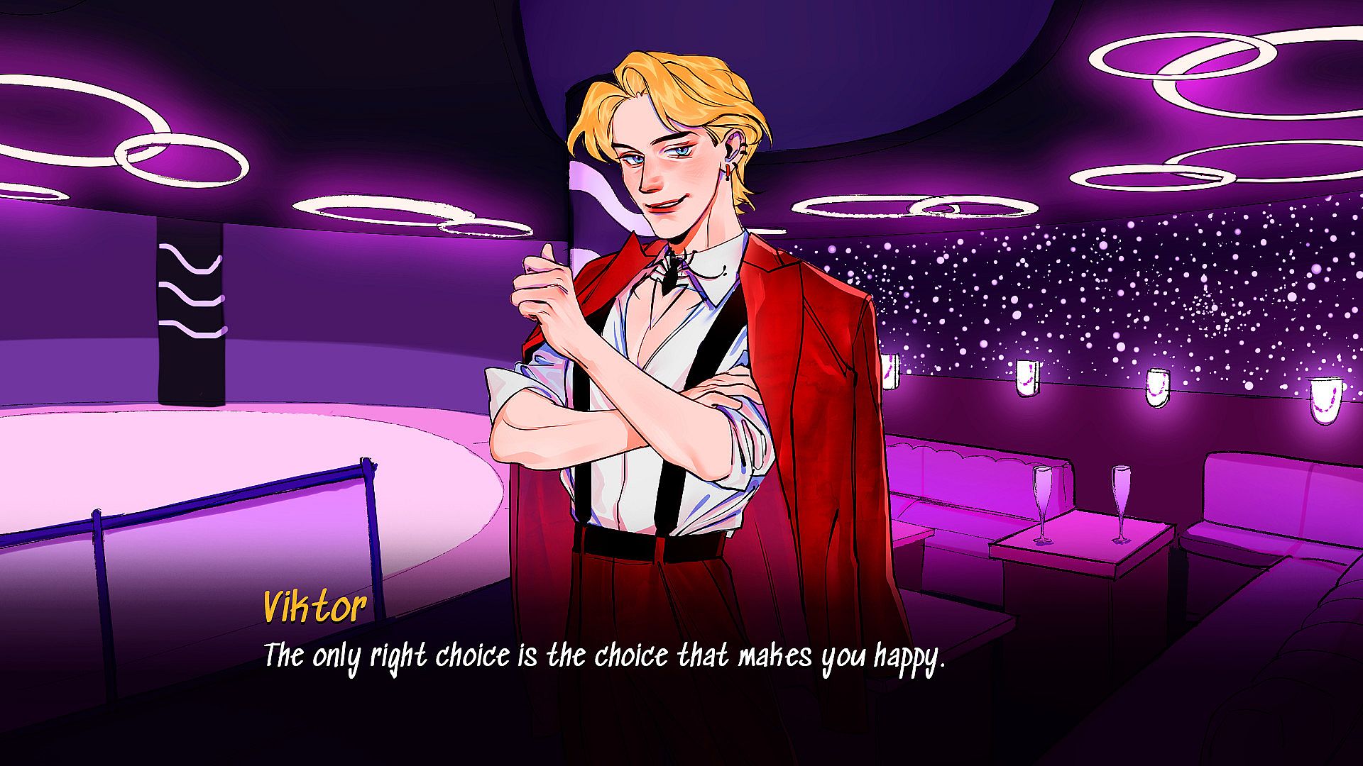 Viktor, 23 - a young entrepreneur. He is charismatic, a little selfish and narcissistic, but very clever. In just 5 years, he managed to build many profitable businesses in this city on his own, although few people believe that he really did it himself.