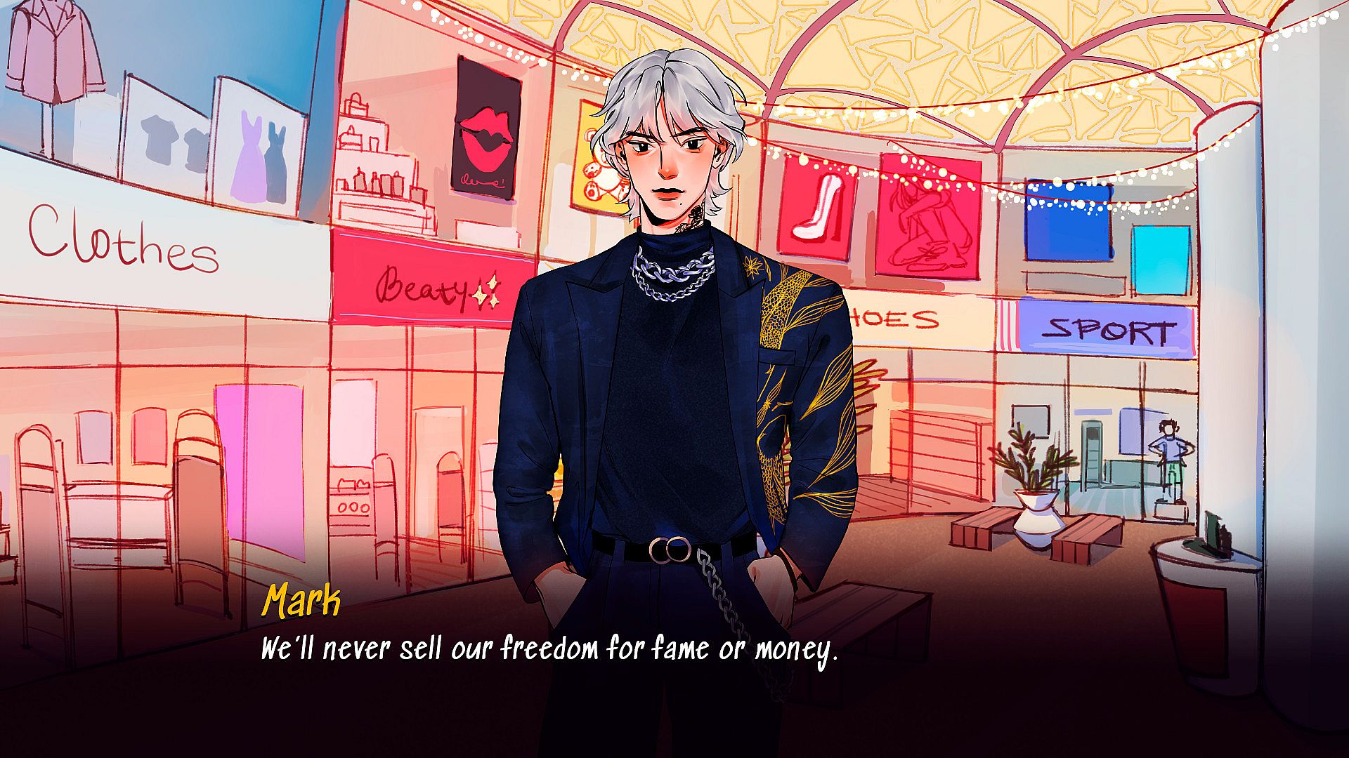 Mark, 21 - a local uprising rockstar, the most popular guy in college. Likes collecting guitars, pedals and vinyl records. Although he seems rude at first, his friends describe him as a very friendly person.