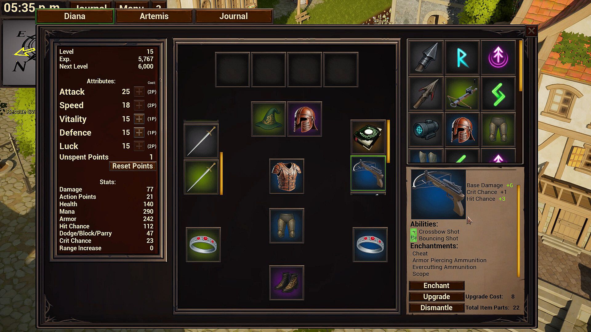 Play as Diana, who levels up, distributes attributes, and gains new actions through equipment—