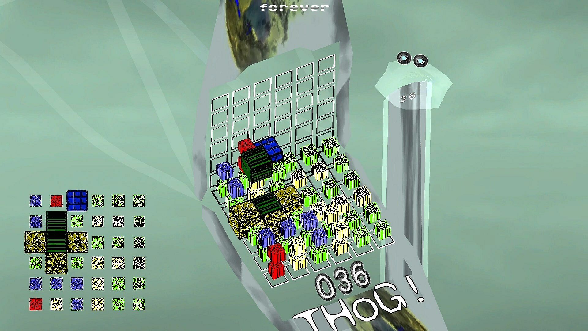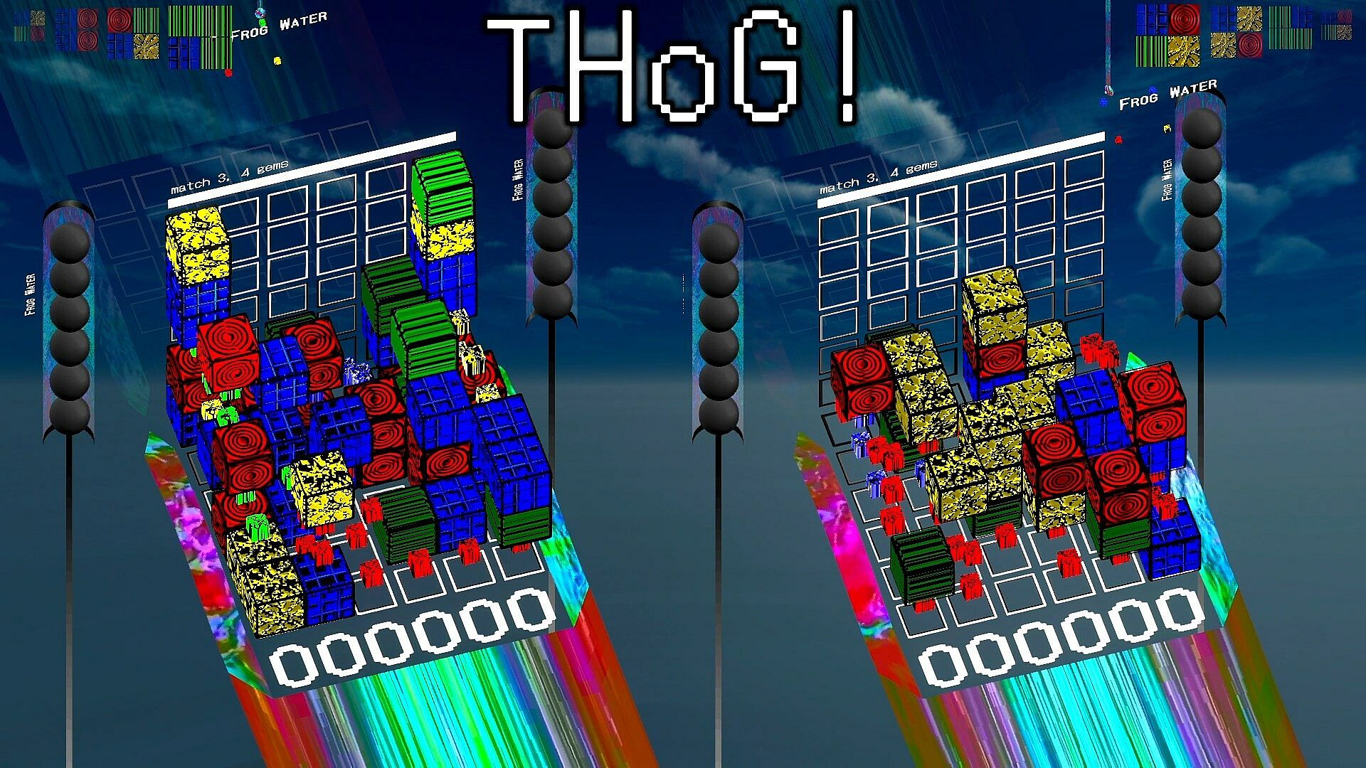 Perfect THoG is a game about placing gems unto a grid. When the arrange phase completes, THoGs are scored, and a round-winner declared.