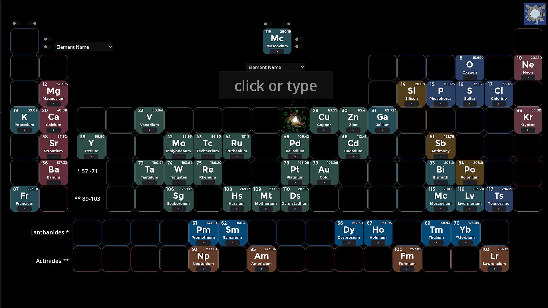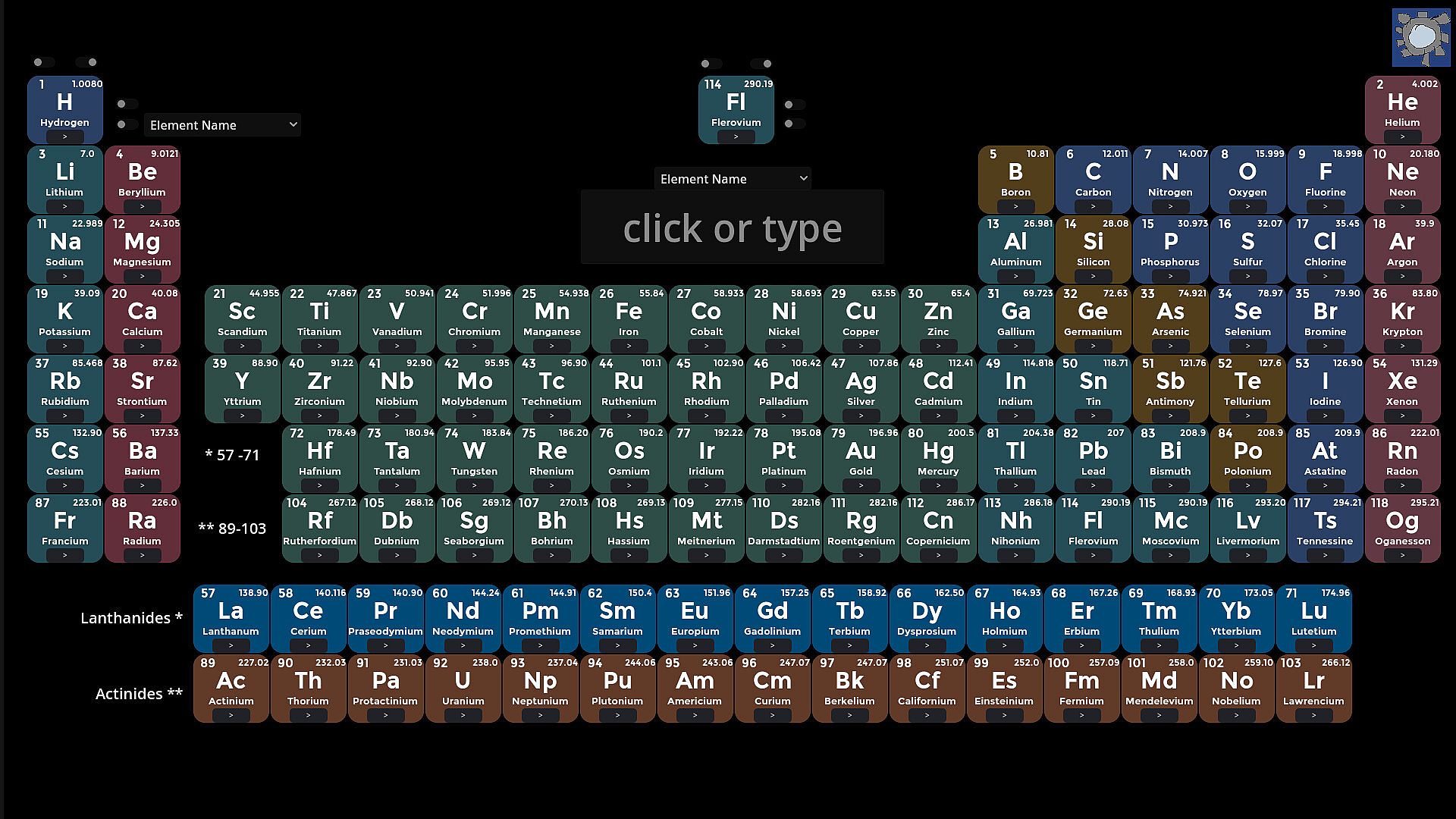 -Trivia, point and Click to help memorize the layout of a Periodic Table