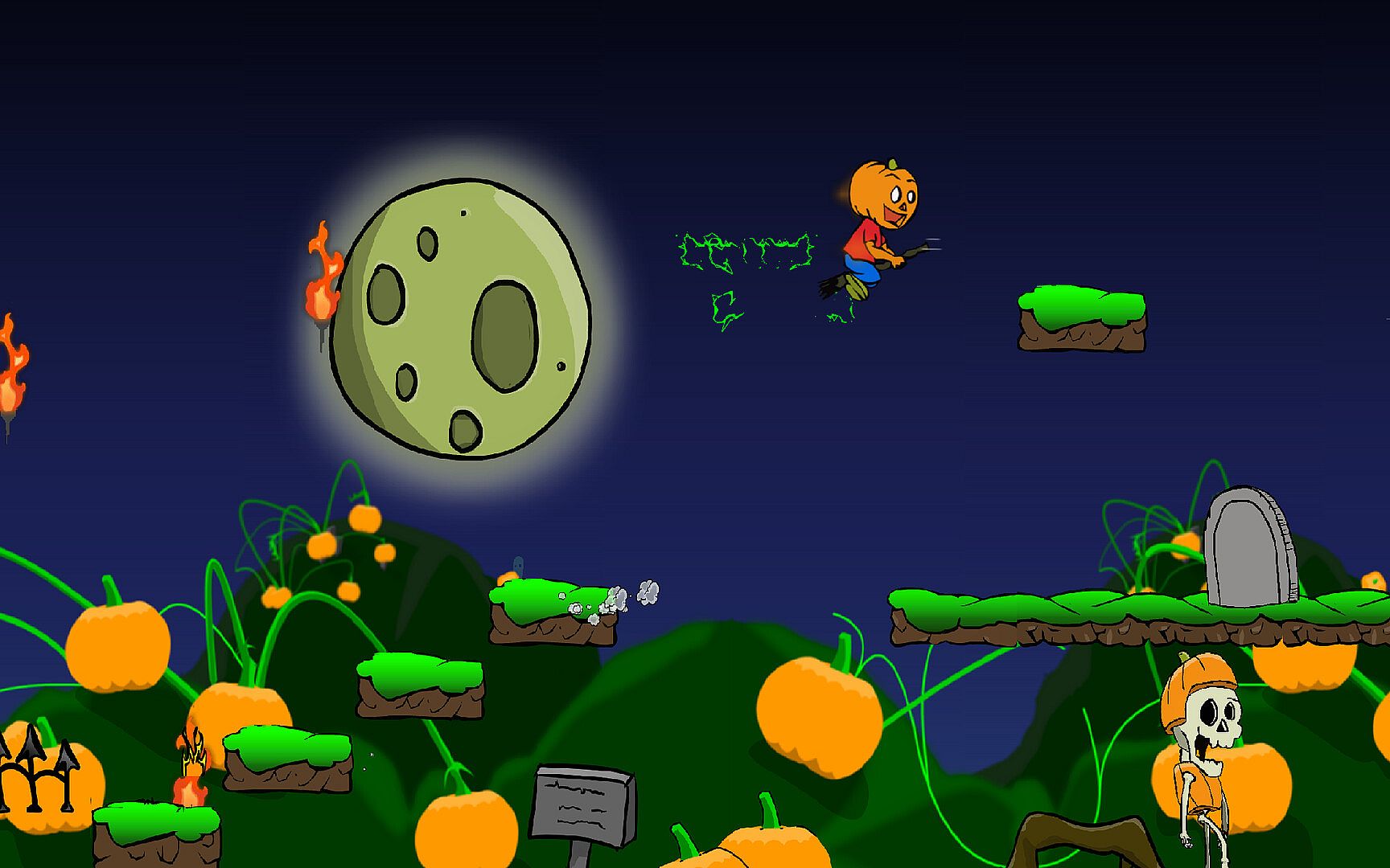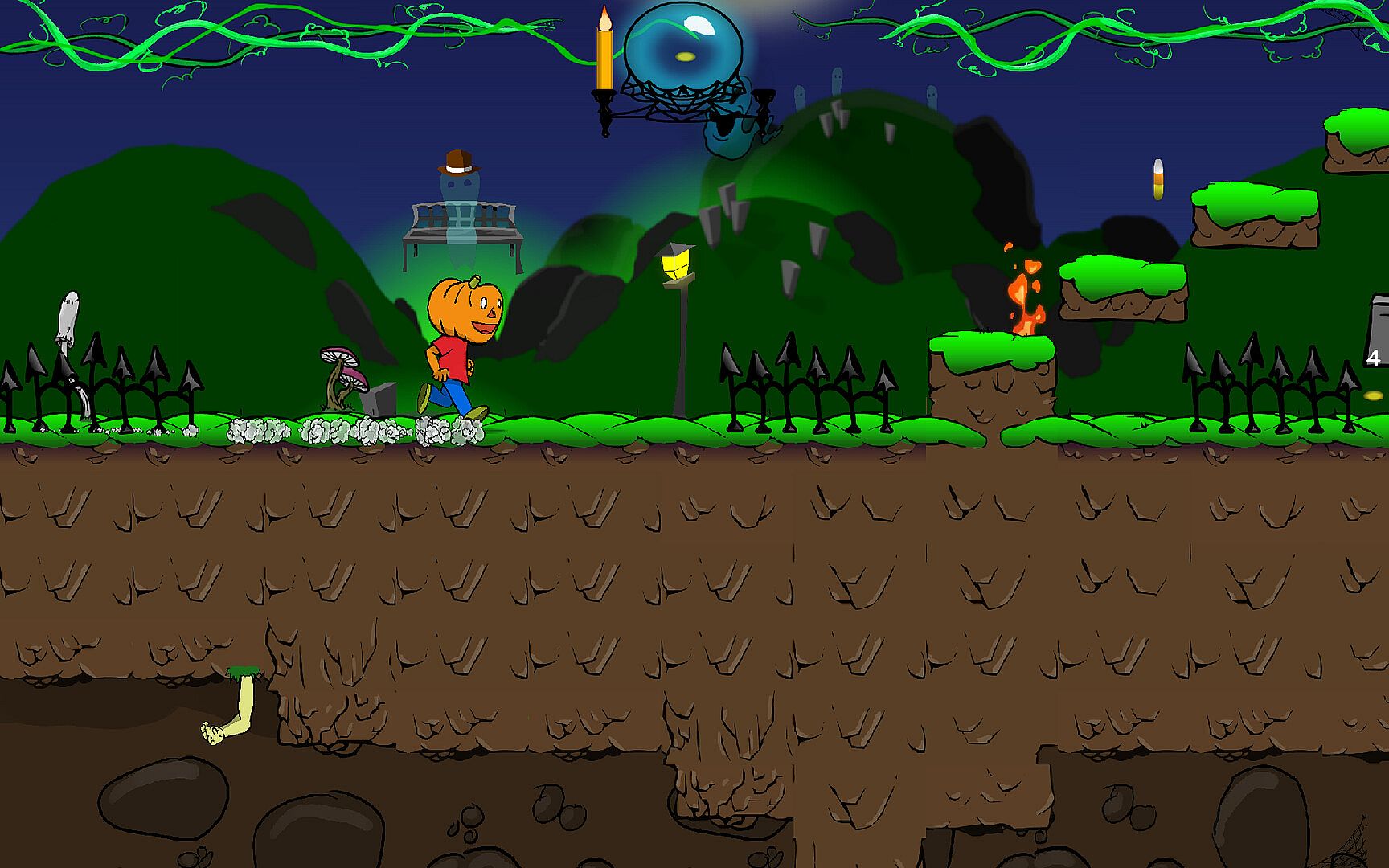 In this thrilling platformer, you step into the shoes (or rather, the vines) of Perry the Pumpkin. Each area you explore unravels more secrets behind the chaos plaguing the spookiest night of the year. As you advance, Perry gains new abilities and discovers magical items. The world is brimming with power-ups, transforming your journey from a simple stroll to a magical flight on a broomstick.