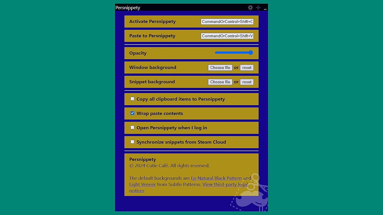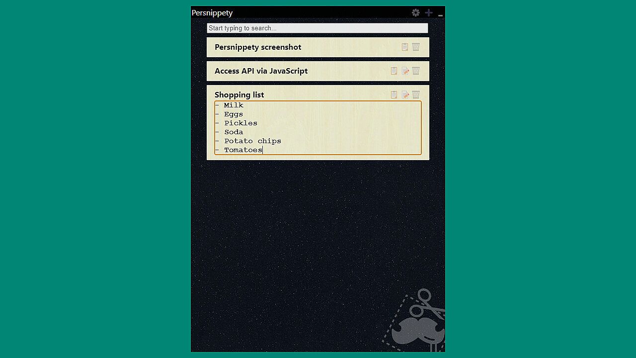 • Flexible - Persnippety can keep track of your clipboard's text or images.